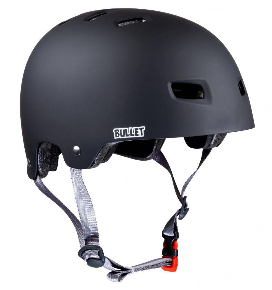Este casco de skate cuenta con revestimiento de poliestireno/espuma EPS, acolchado interior en 3 piezas extraíbles que pueden ser lavadas, sistema de ventilación con 12 respiraderos, Certificado de seguridad CE EN 1078, el logo de Bullet estampado en el lado derecho y el icónico logo Screaming Hand de la leyenda del arte del skate Jim Phillips estampado en el lado izquierdo.