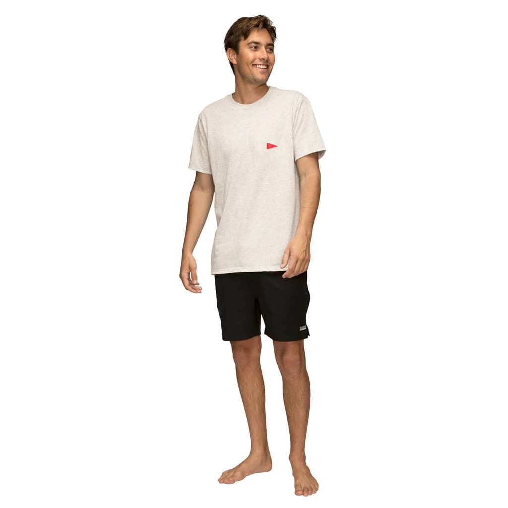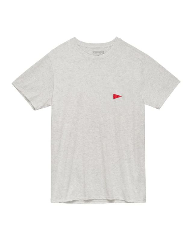 La camiseta de manga corta para hombre Burgee Recover en gris (Light Heather Grey) de Florence Marine X está confeccionada con fibras recicladas de algodón (52%) y poliéster (48%) procedentes de tejido Recover™ a base de restos textiles.