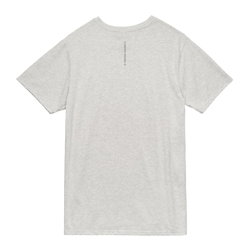 La camiseta de manga corta Burgee Recover gris para hombre tiene un sello de garantía Florence Marine X estampado en el cuello interior.