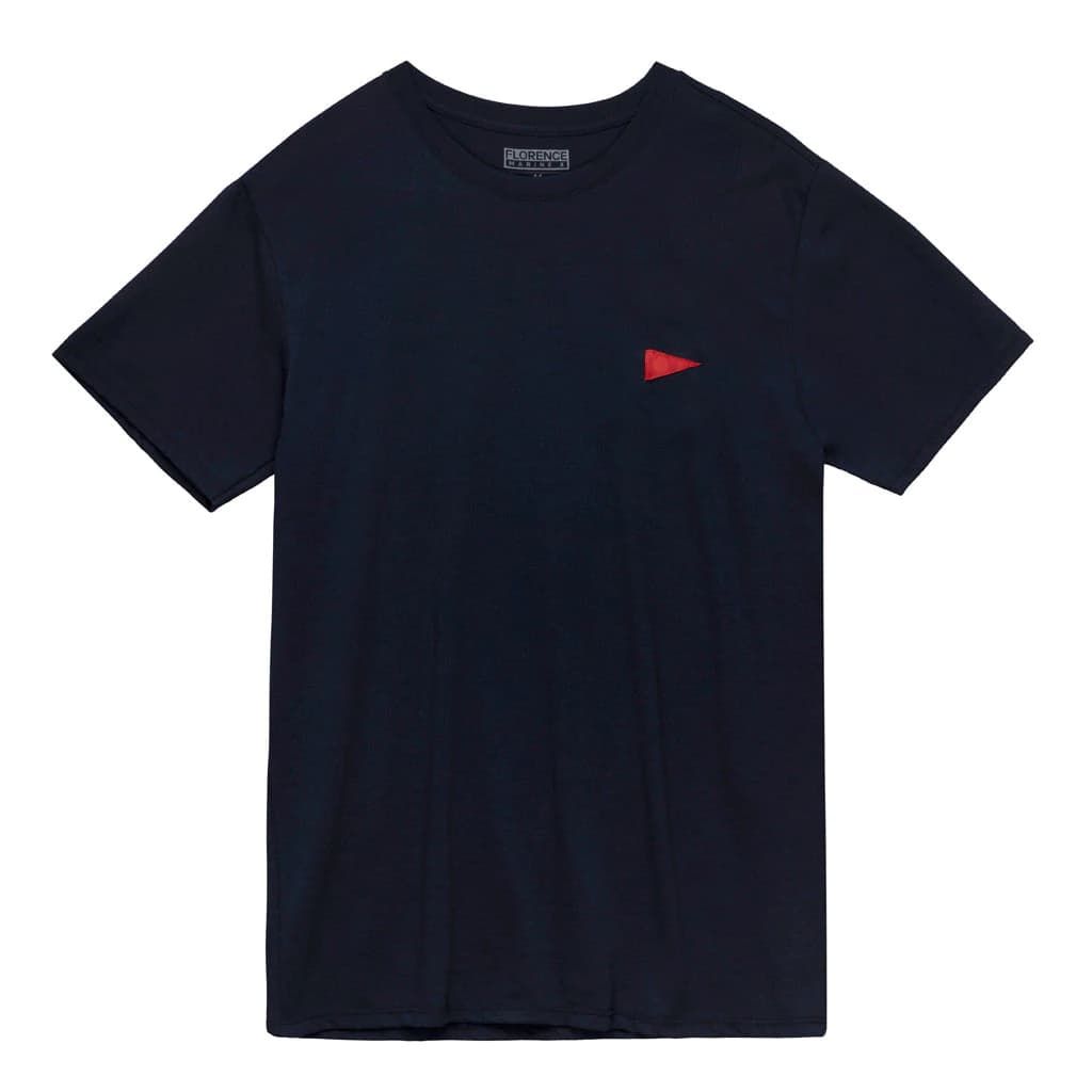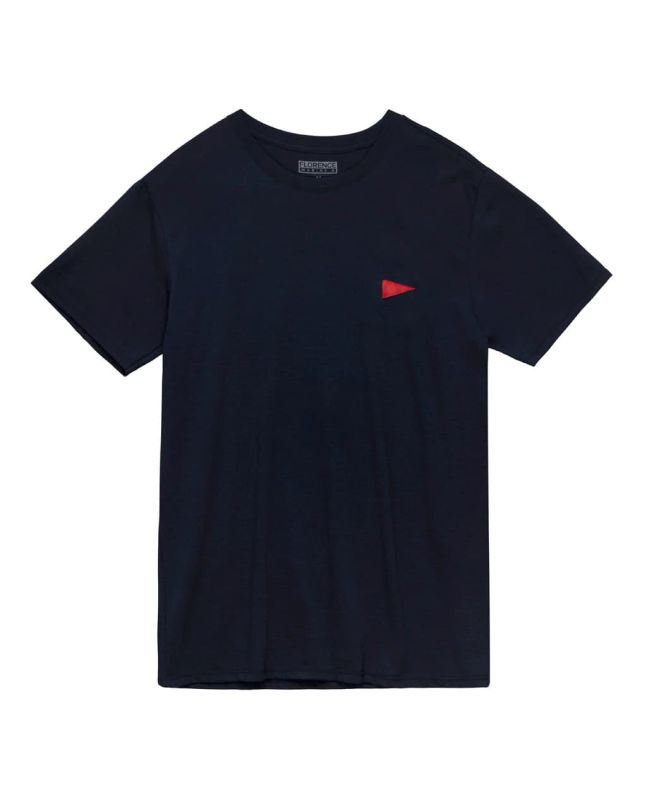 Esta camiseta de corte normal cuenta con cuello redondo, manga corta, la bandera roja (Burgee) de John John Florence tejida en el lateral izquierdo del pecho y el logo de Florence Marine X estampado en la espalda.