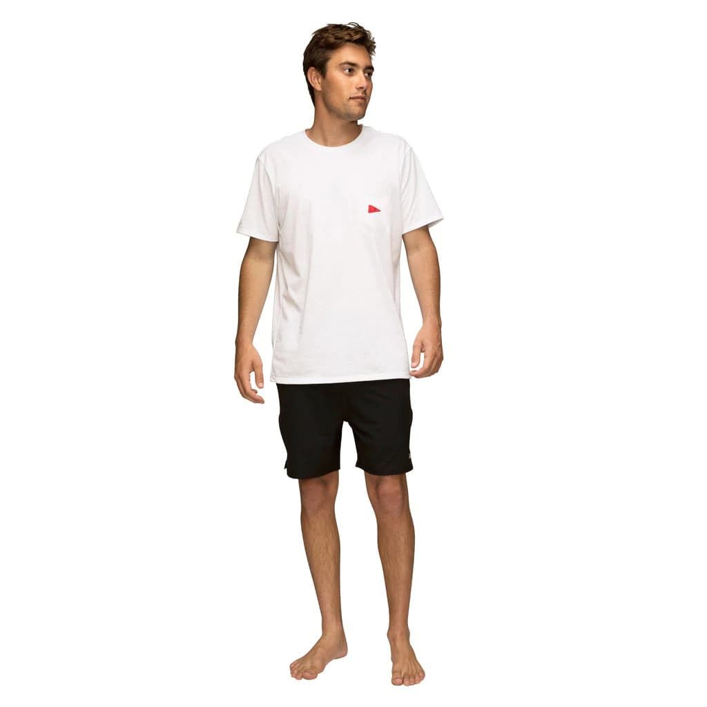 La camiseta de manga corta Burgee Recover blanca para hombre tiene un sello de garantía Florence Marine X estampado en el cuello interior.