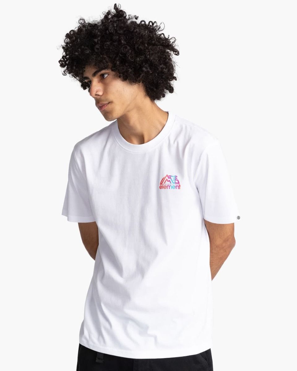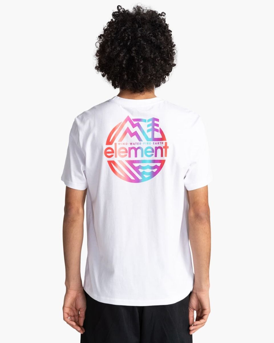 Esta camiseta de corte clásico cuenta con cuello redondo, manga corta y el logo de Element y los cuatro elementos serigrafiados en contraste en el pecho y la espalda.