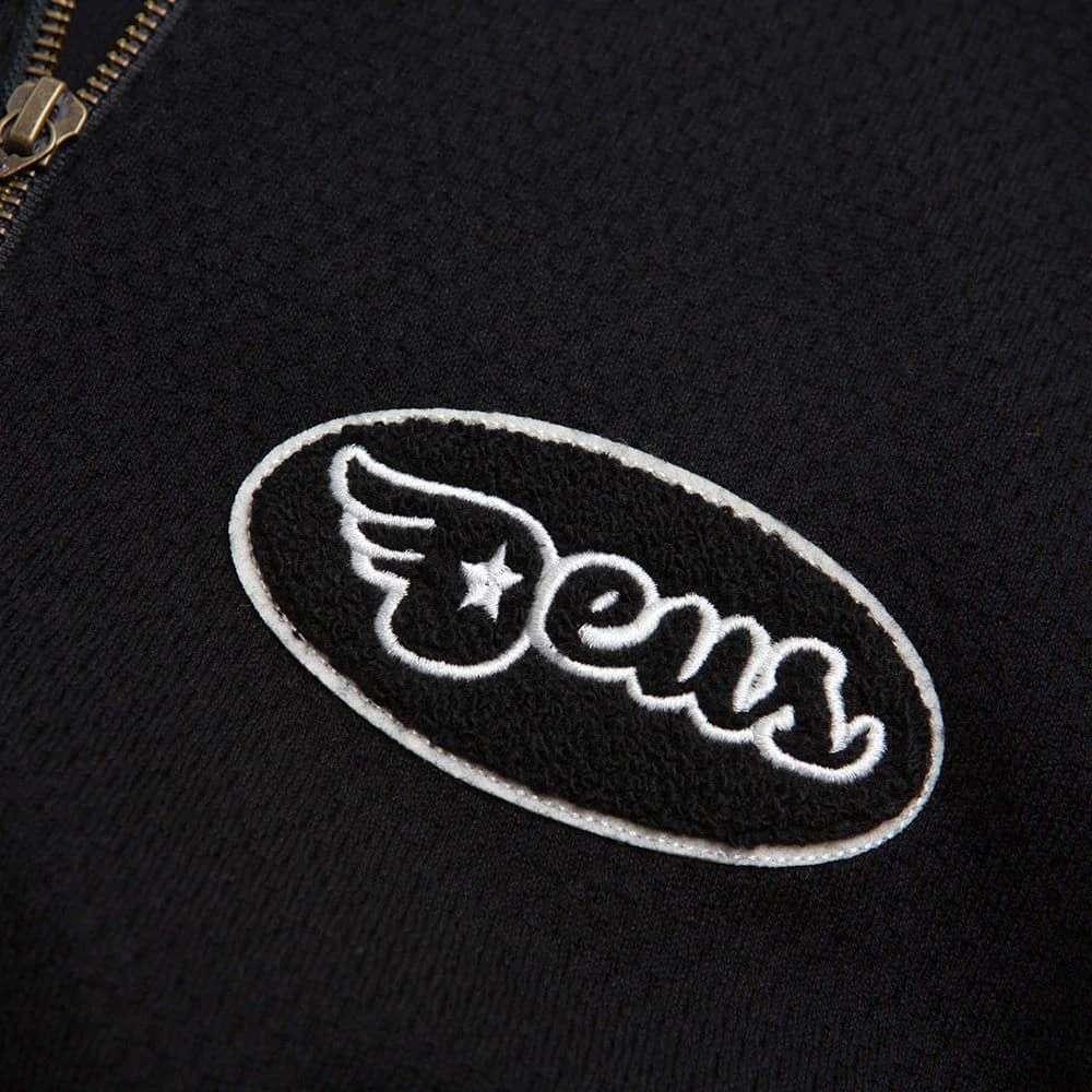 LA chaqueta Buzz Zip Thru Knit negra para hombre tiene el sello de garantía Deus Ex Machina.