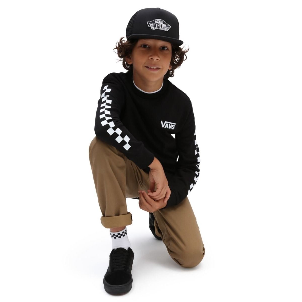 La sudadera para chicos de entre 8 y 14 años Exposition Check tiene el sello de garantía Vans.