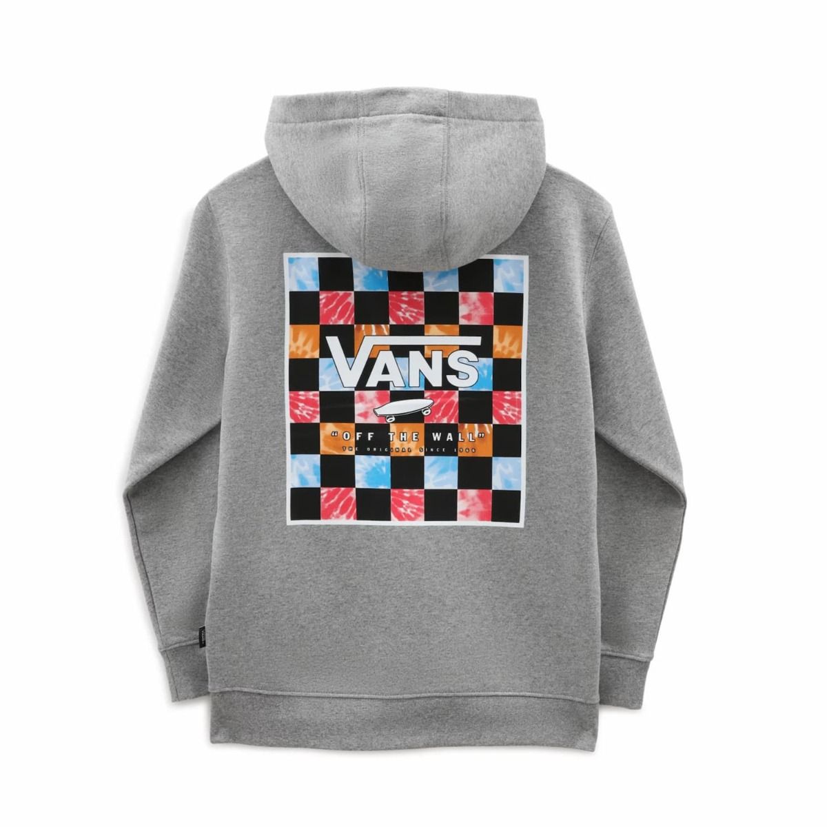 Este hoodie de corte normal, clásico y cómodo cuenta con capucha, un amplio bolsillo tipo canguro, el logo de Vans en el lado izquierdo del pecho y un estampado rectangular a cuadros en Tie Dye con el logo de la marca en la espalda.