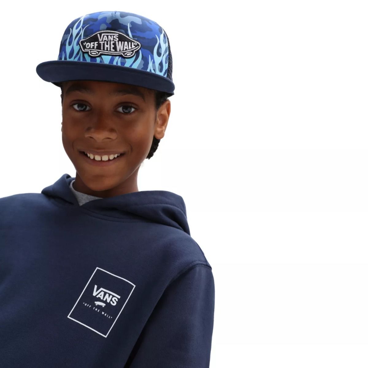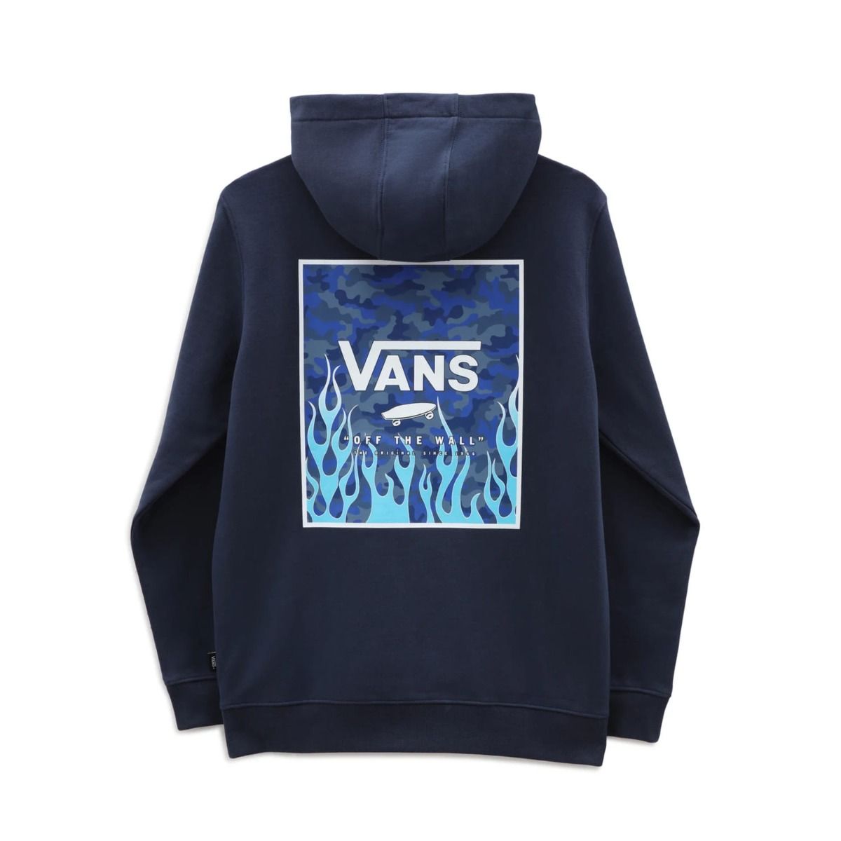 La sudadera con capucha para chicos de entre 8 y 14 años Print Box de Vans en azul con estampado camo en llamas (Dress Blues/Camo Flame) ha sido confeccionada con felpa de algodón 100%.