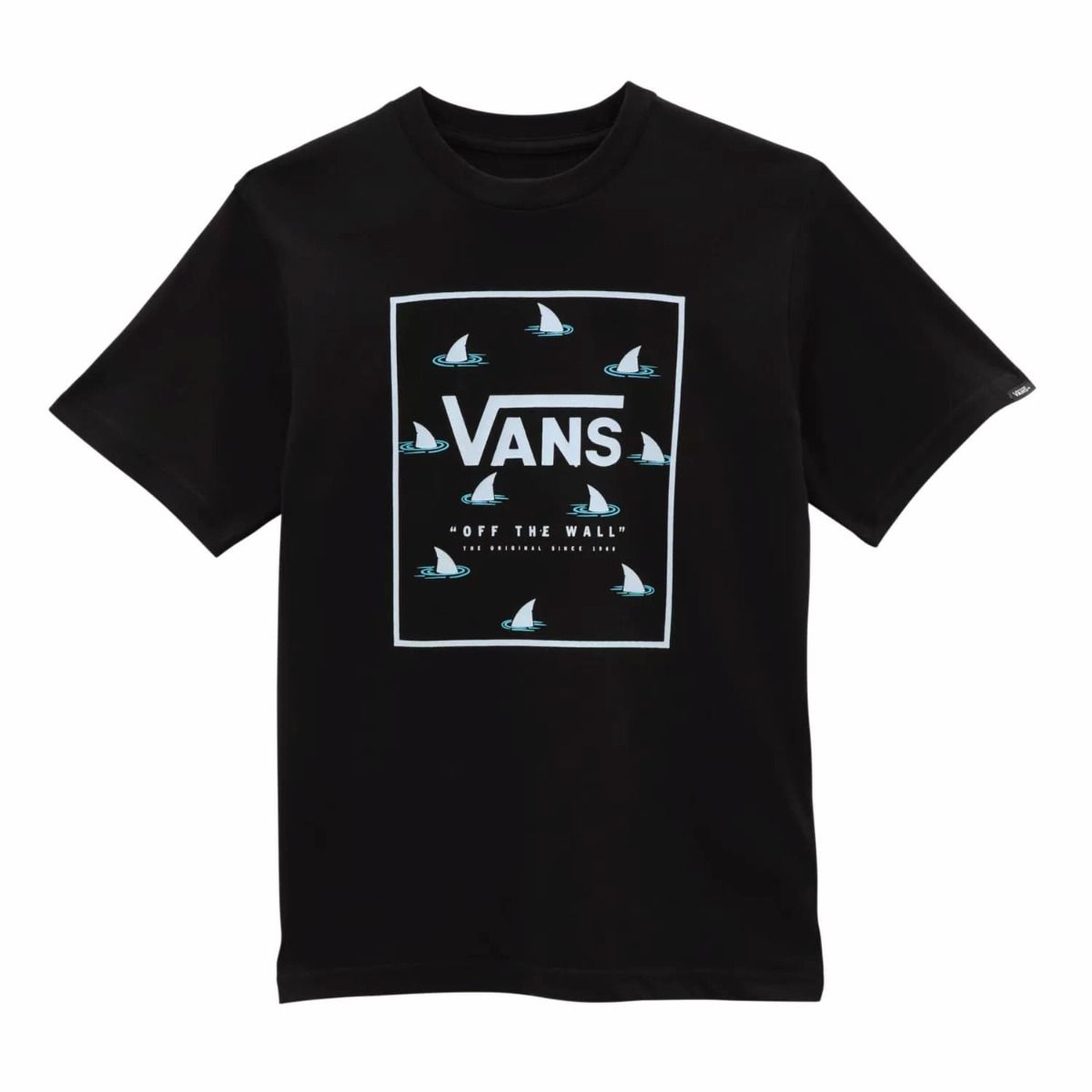 La camiseta de manga corta para chico Print Box Shark Fin negra tiene el sello de garantía Vans en el cuello interior.