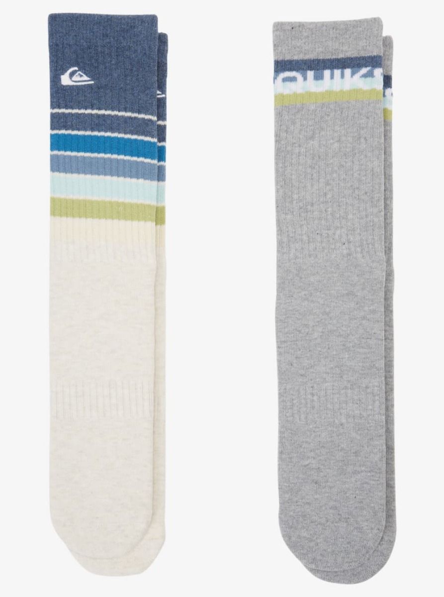 Los calcetines largos Quiksilver Swell para hombre vienen en packs de 2 pares, uno en color gris y otro en tono marfil (Ivory Heather).