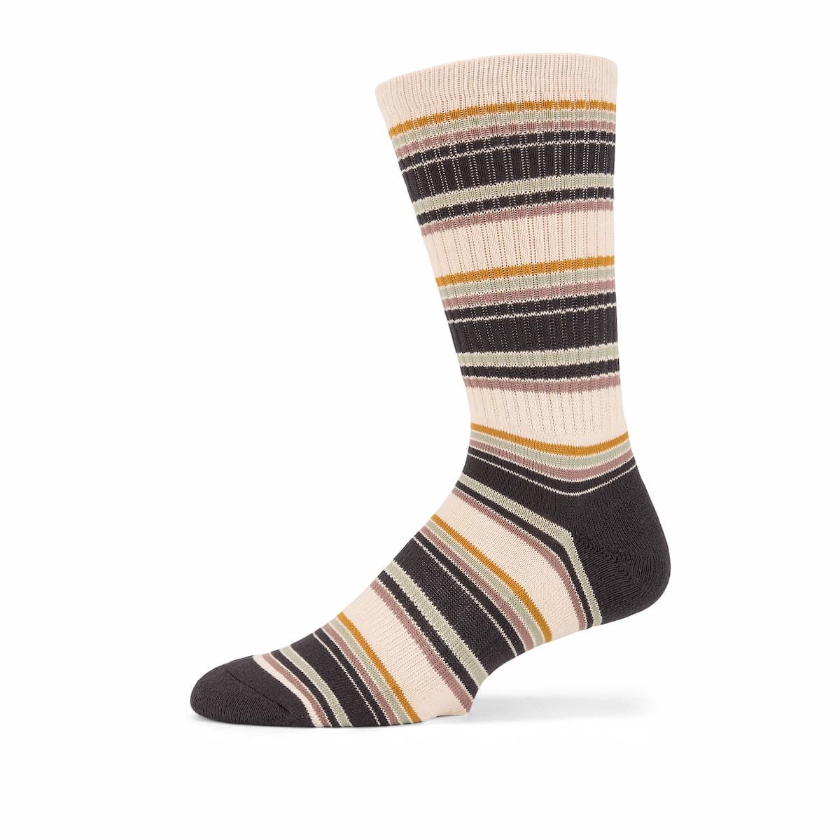 Estos calcetines de largo medio cuentan con tobillo acanalado, refuerzo en el arco del pie, talón articulado, estampado jacquard a rayas y bordado Stone.