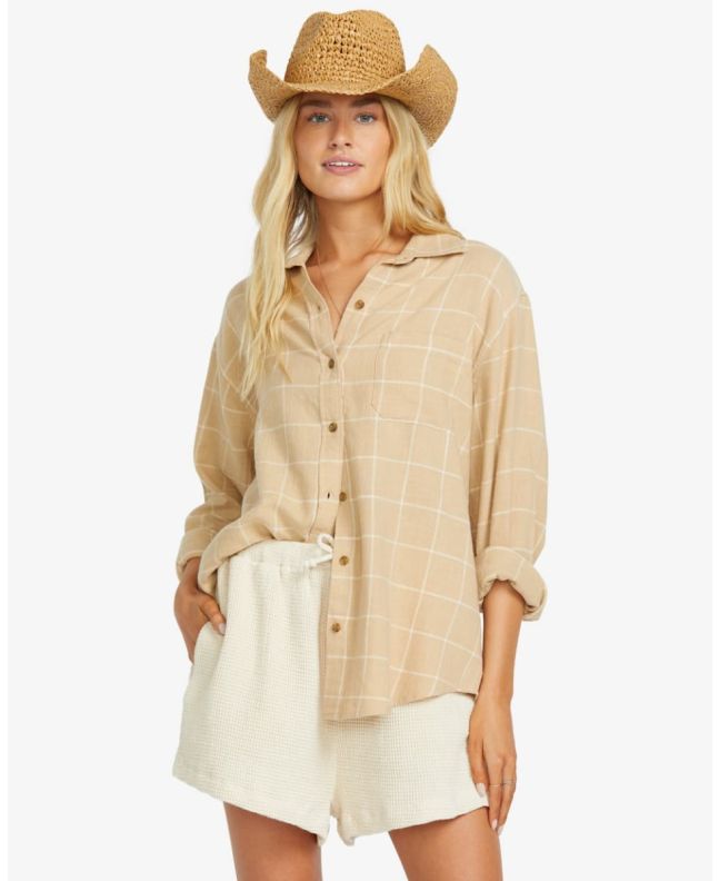 La camisa para mujer Layer Up LS Woven en tono caqui (Khaki) de Billabong es una prenda versátil y esencial para cualquier armario. Como parte de la Colección Essentials, combina un look clásico con un ajuste relajado, ideal para usar en capas o como prenda principal en cualquier temporada.