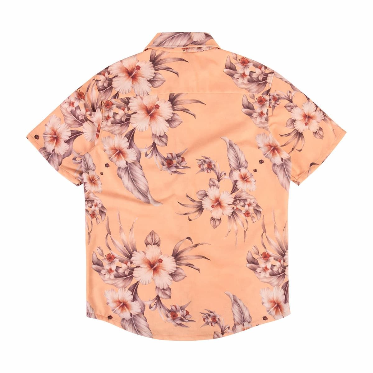 La camisa de manga corta para hombre Botanic Piquet Shirt en tono melocotón con estampado floral (Impala) de Lightning Bolt está confeccionada con tejido de 50% algodón y 50% poliéster.