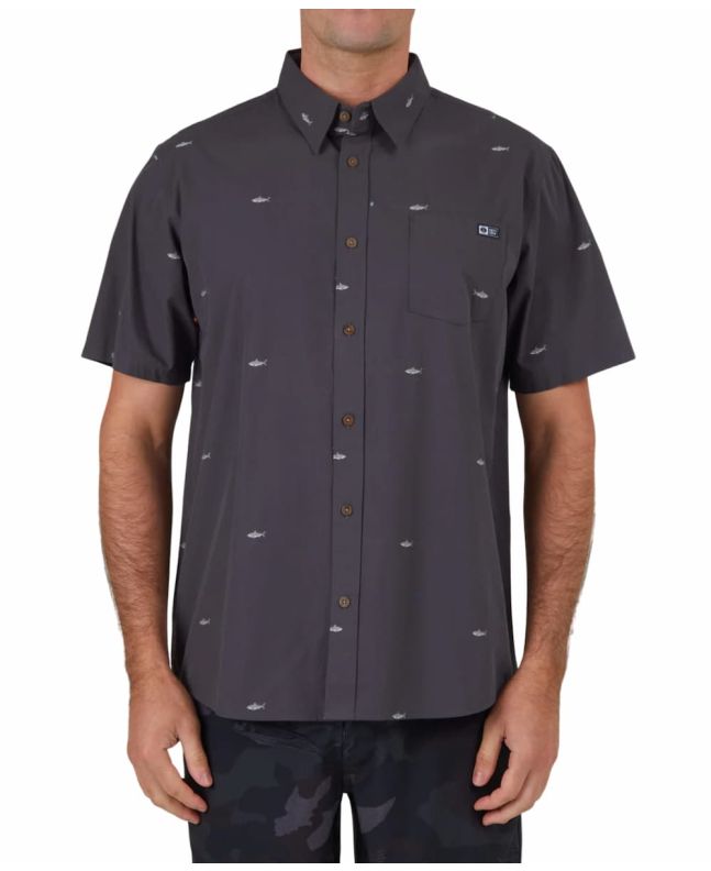 Deja que la esencia del mar te acompañe con la Camisa de manga corta Bruce Woven color Charcoal para hombre de Salty Crew.