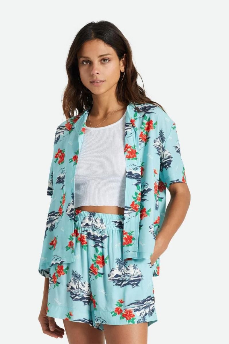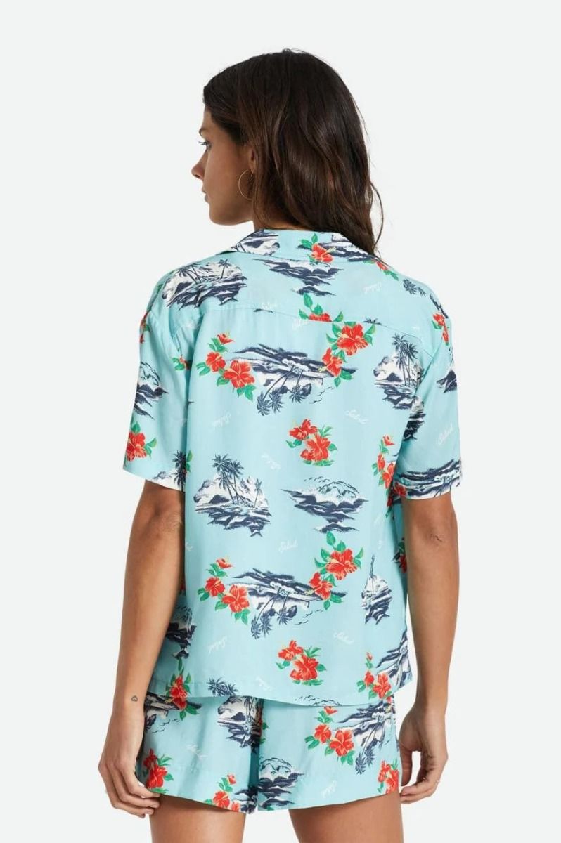 La camisa de manga corta Bunker Paradise azul para mujer de Brixton también está disponible en color verde (Leprechaun).