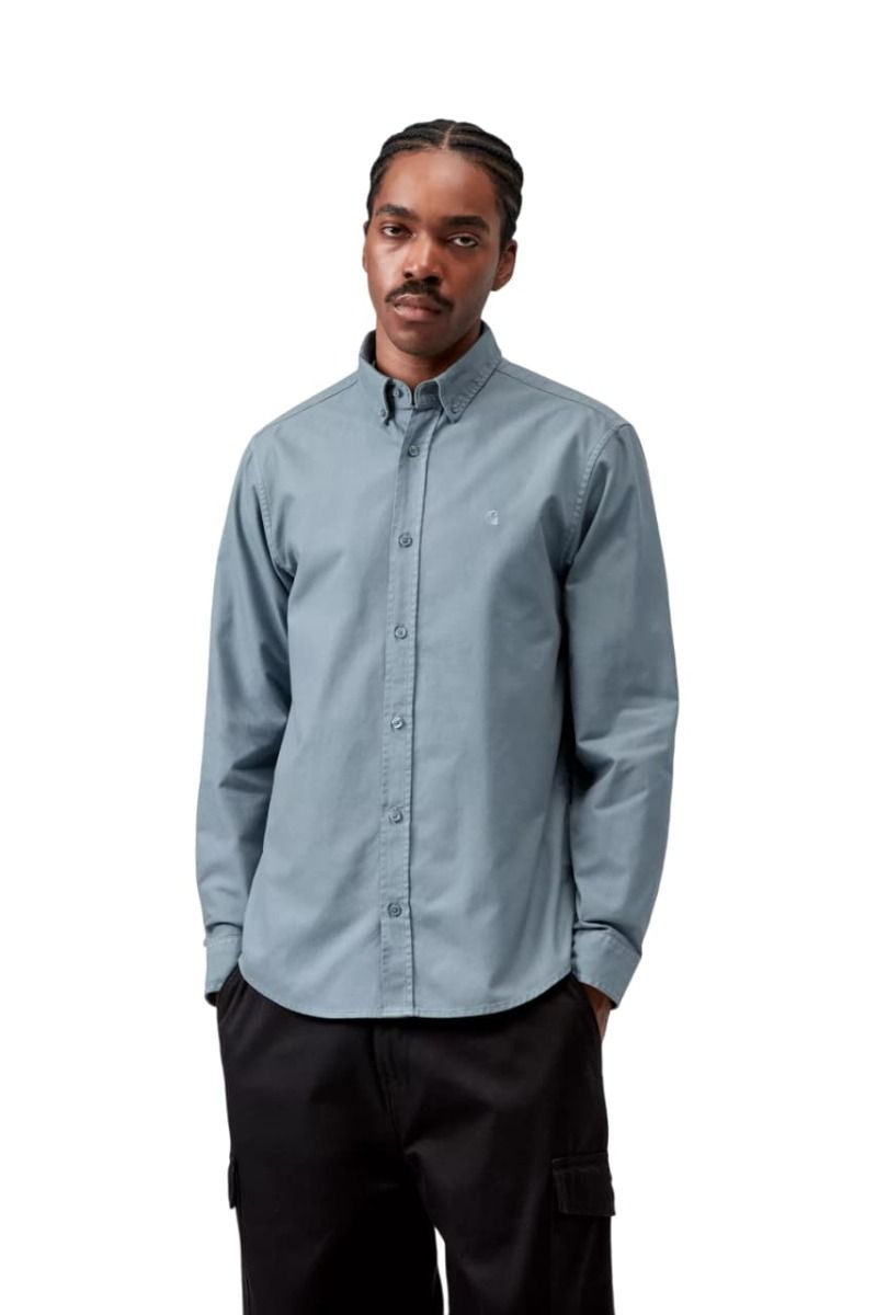Camisa de manga larga Carhartt WIP Bolton de algodón oxford teñido en prenda con cuello abotonado y logo bordado.