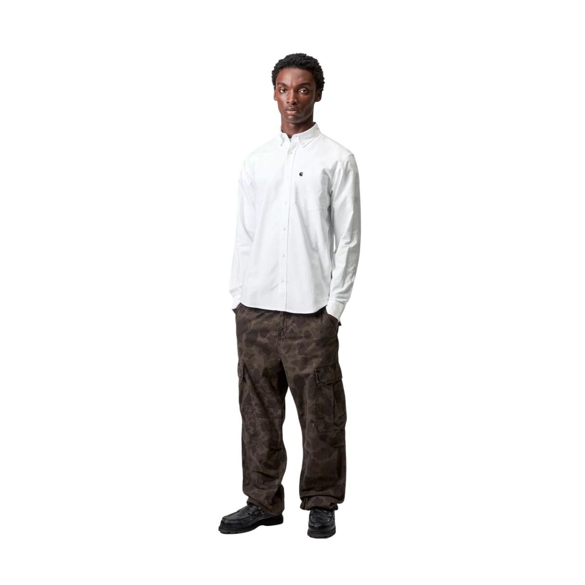La L/S C Logo Shirt de Carhartt WIP es una camisa de manga larga con carácter urbano y acabado sofisticado. Diseñada para quienes combinan lo formal con lo funcional, esta prenda fusiona la estética workwear con los códigos del streetwear contemporáneo. El contraste del bordado azul marino sobre fondo blanco transmite sobriedad sin perder autenticidad.
