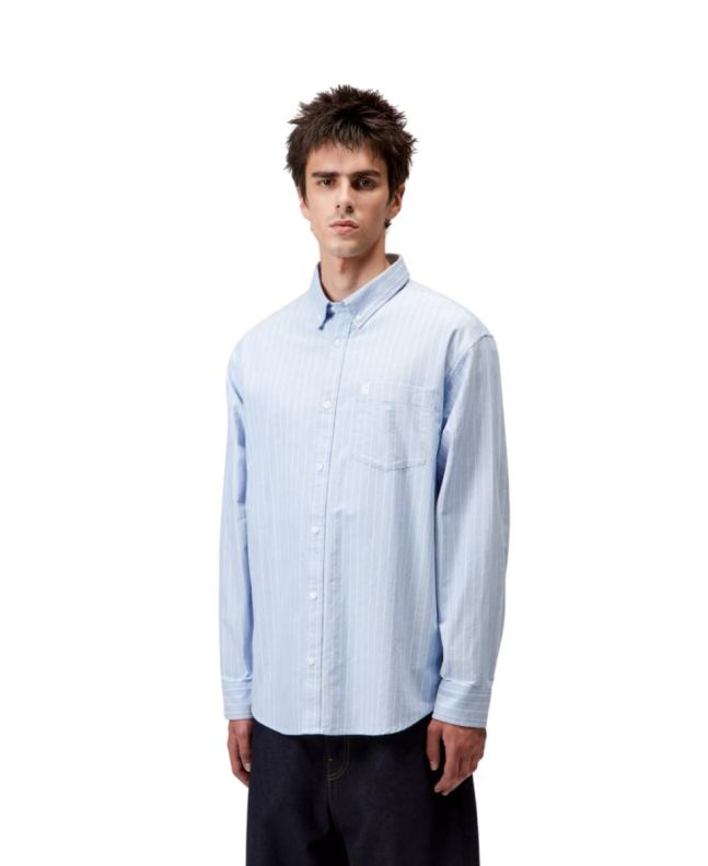 Camisa Carhartt WIP Cassel Stripe para hombre en algodón Oxford ligero y corte holgado.