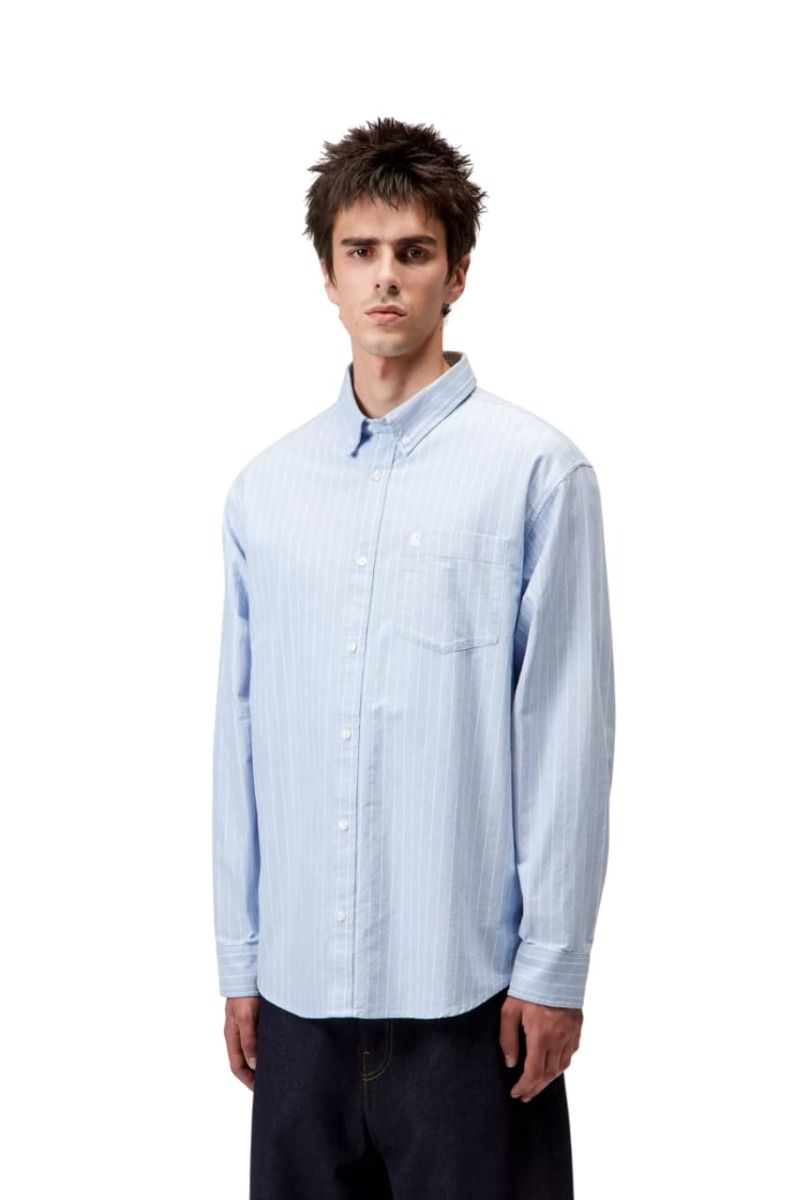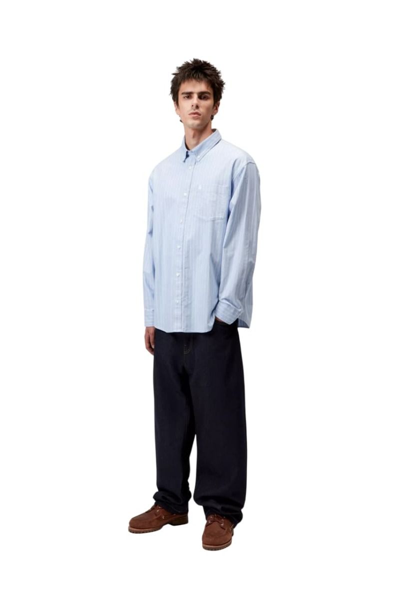 La Carhartt WIP L/S Cassel Shirt es una camisa de manga larga diseñada para quienes buscan una prenda con carácter clásico y un toque contemporáneo. Su patrón de rayas en azul y blanco (Bleach/White) aporta una presencia limpia y moderna, ideal para combinar con denim, pantalones cargo o looks más formales.