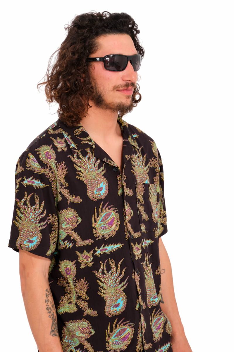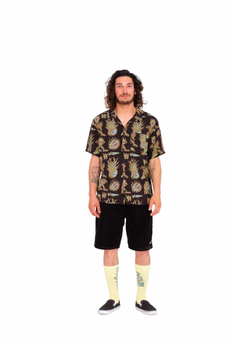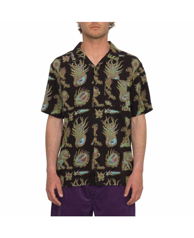¡Olvídate de las camisas aburridas y lánzate a por un look más atrevido con la Camisa de manga corta FA Tetsunori Negra para hombre de Volcom!