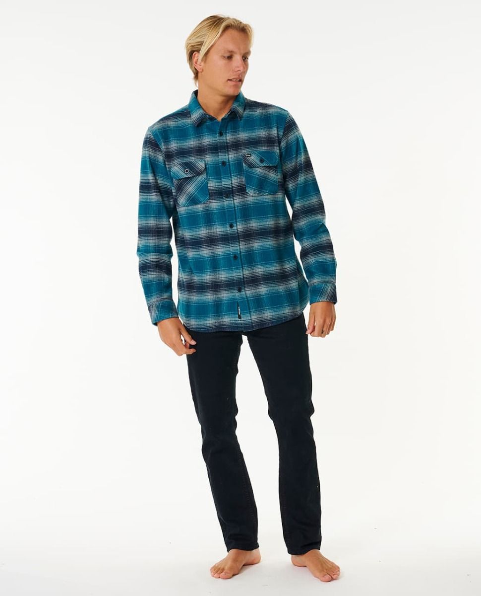 La camisa de manga larga para hombre Count Flannel Shirt en tono azul (Mineral Blue) de Rip Curl está confeccionada con tejido grueso afelpado de 100% algodón (260g/m2).
