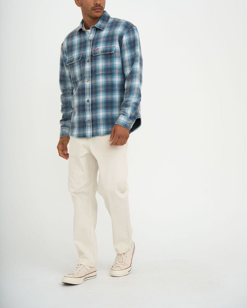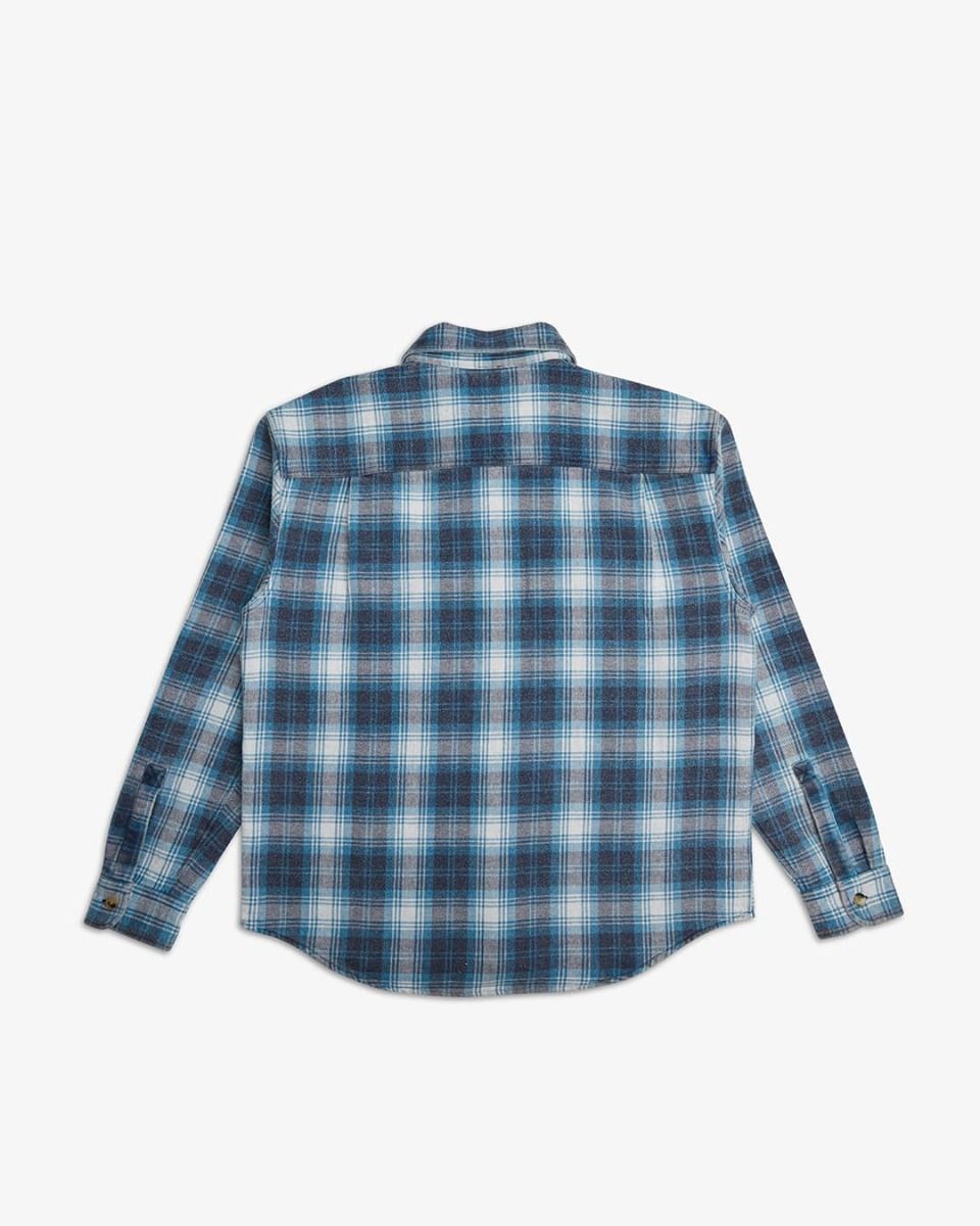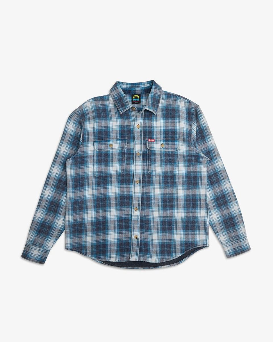 La camisa de franela de manga larga Vacay Check Azul para hombre tiene el sello de garantía Deus Ex Machina.