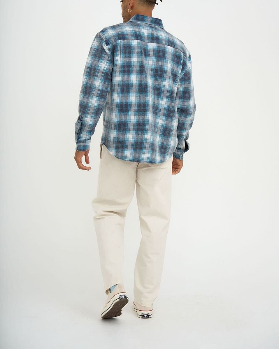 La camisa de manga larga para hombre Vacay Check Shirt en tono azul con estampado a cuadros (Maui Check) de Deus Ex Machina está confeccionada con franela de algodón cálida y transpirable.