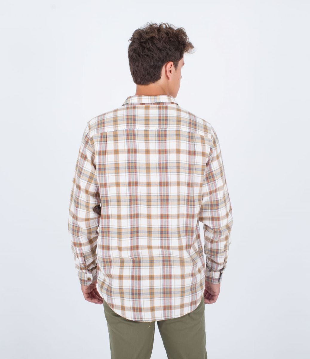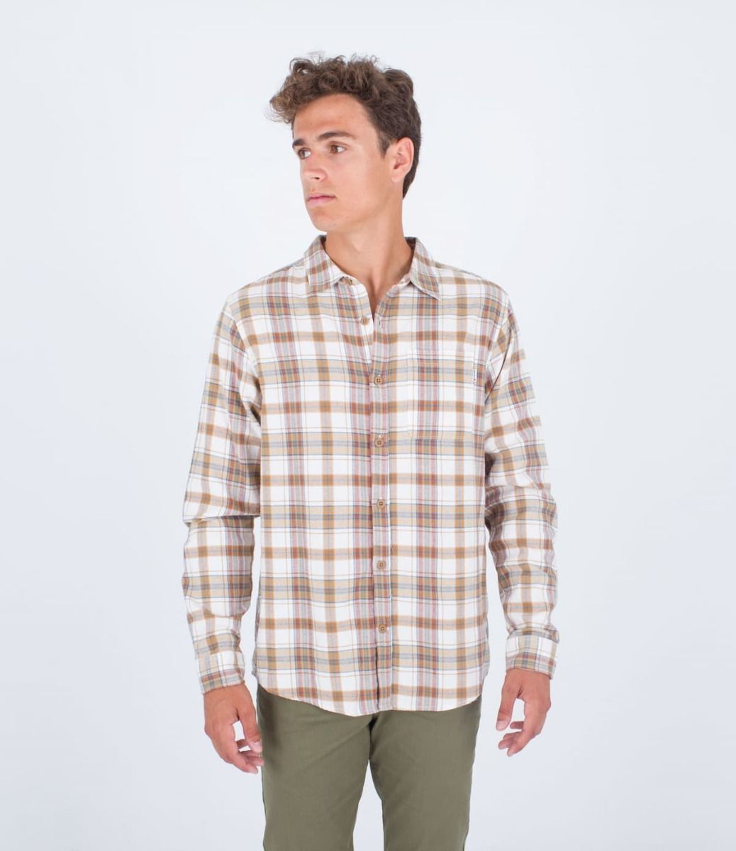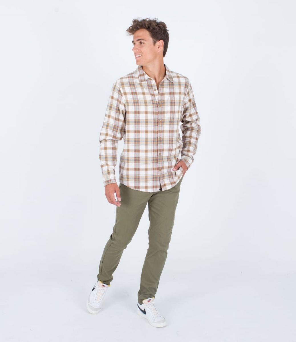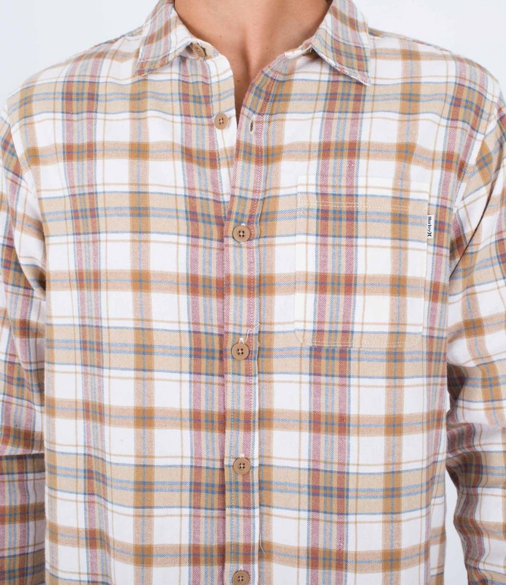 La camisa de franela de manga larga Portland Organic Flannel Beige para hombre tiene el sello de garantía Hurley.