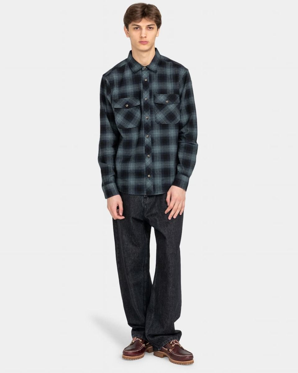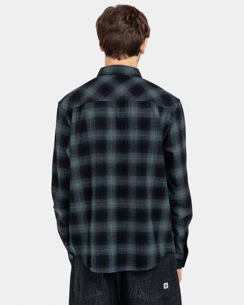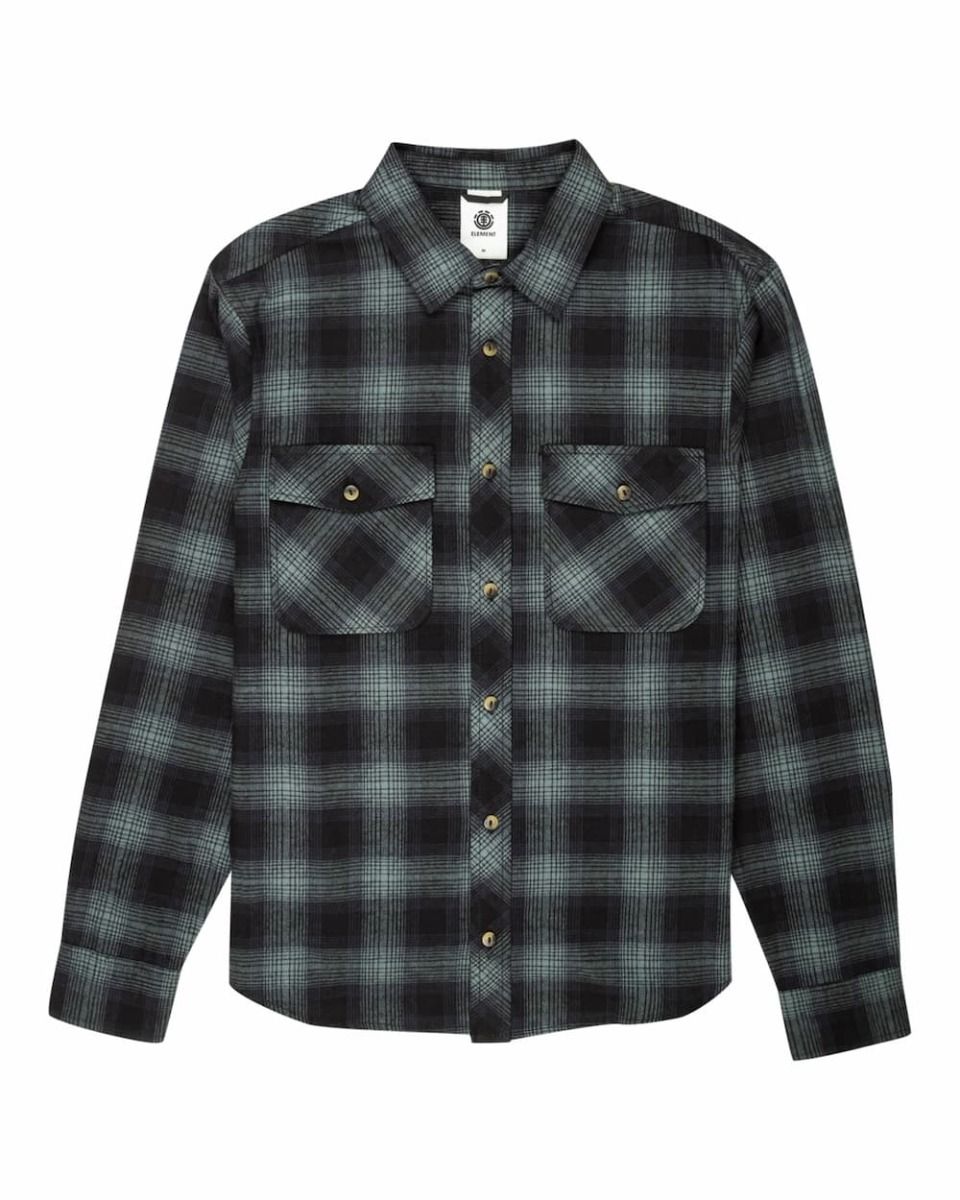 Esta cálida camisa verde de franela orgánica, perteneciente a la Colección "Conscious by Nature" (Naturalmente conscientes) de Element Brand, cuenta con corte normal, manga larga, cuello clásico, cierre de botones, dos bolsillos en el pecho con solapa y botón, puños con botón, estampado a cuadros y una pequeña etiqueta Element tejida en el lateral.