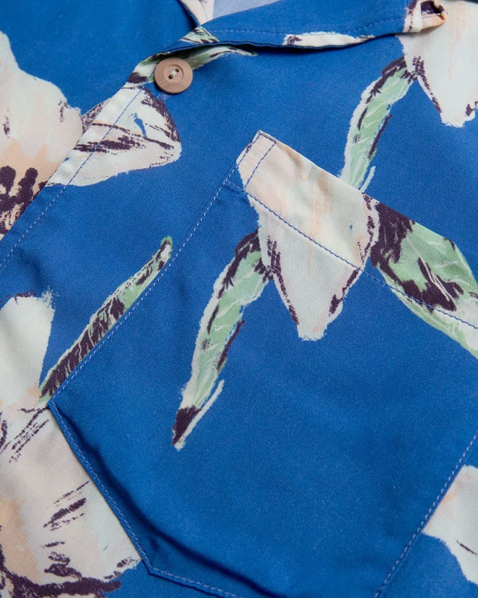 ¡Olvídate de las camisas aburridas y lánzate a por un look de inspiración vacacional con la Camisa de manga corta Havana Azul para hombre de Deus Ex Machina!
