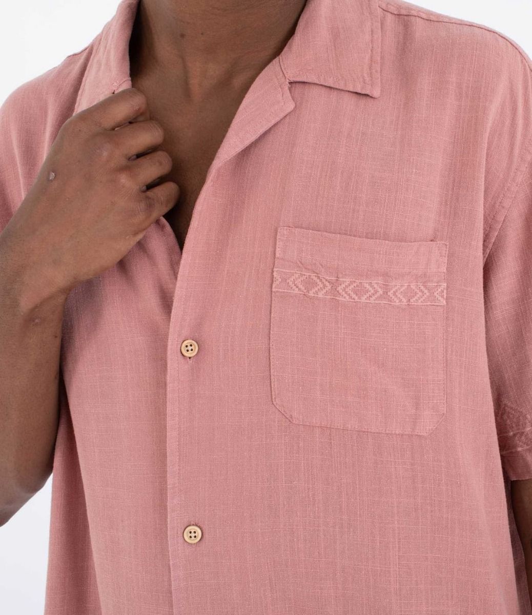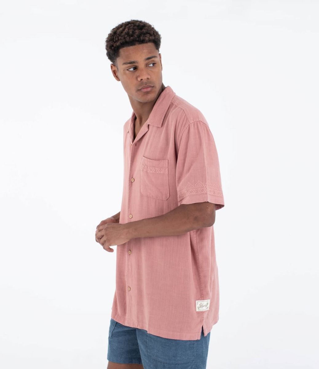 Camisa de manga corta Hurley Laguna Camp Embroidered en color rosa para hombre