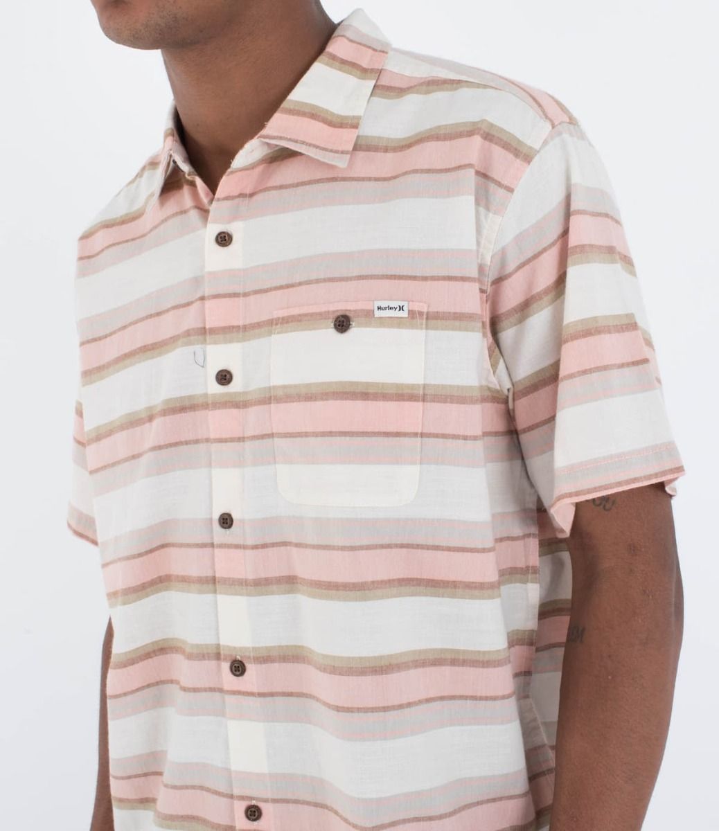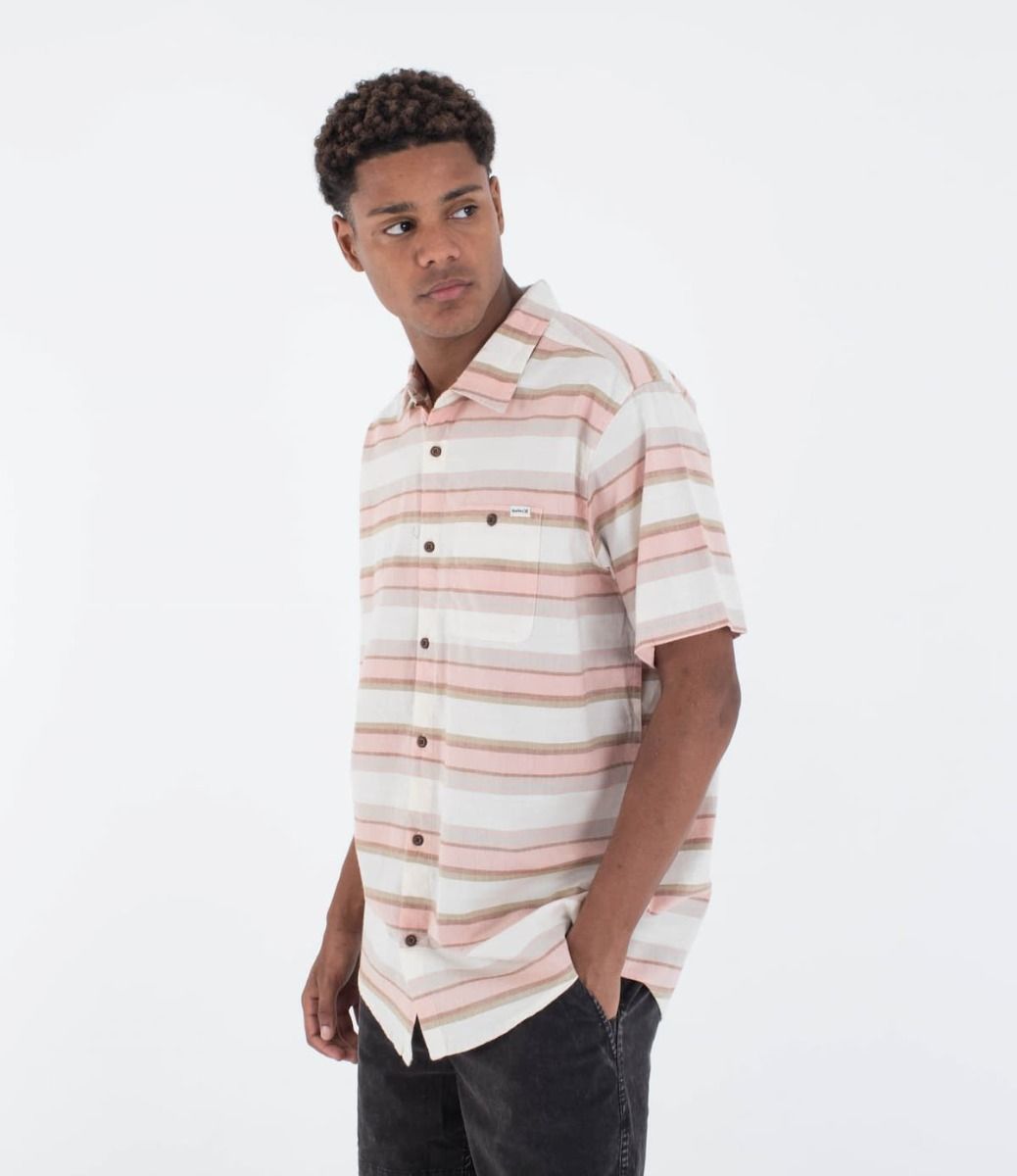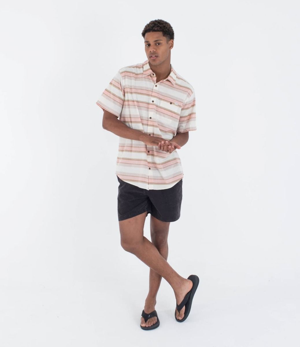 Camisa de manga corta Hurley One and Only Lido Stripe Bone para hombre