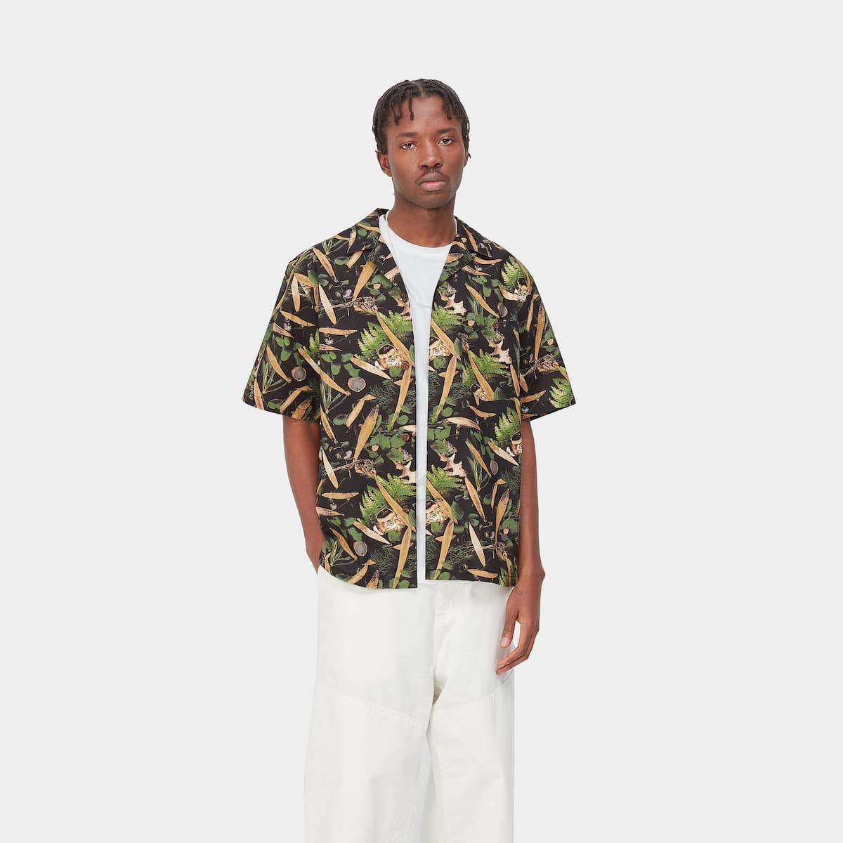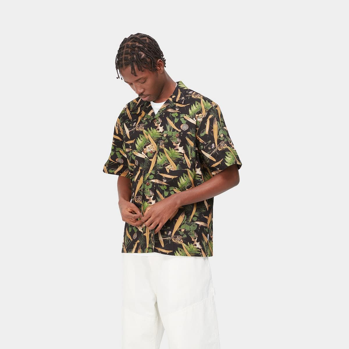 La camisa de manga corta para hombre S/S Lumen Shirt en negro con estampado de temporada (Lumen Print-Black) de Carhartt WIP está confeccionada con 100% algodón ligero.
