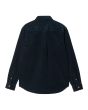 Esta camisa clásica de pana azul marino oscuro cuenta con ajuste regular, lavado en prenda para mayor suavidad, cuello abotonado, manga larga, cierre frontal de botonadura, dobladillo curvado y el logotipo de la "C" de Carhartt WIP bordado en color blanco cera el lado izquierdo del pecho.