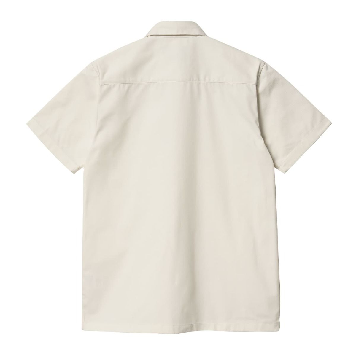 La camisa de manga corta para hombre S/S Master Shirt en tono blanco cera (Wax) de Carhartt WIP está confeccionada con tejido en mezcla de 65% poliéster y 35% sarga de algodón (7,2oz), por lo que es perfecta para los días de calor.