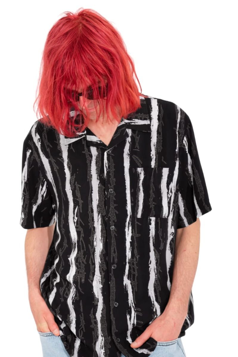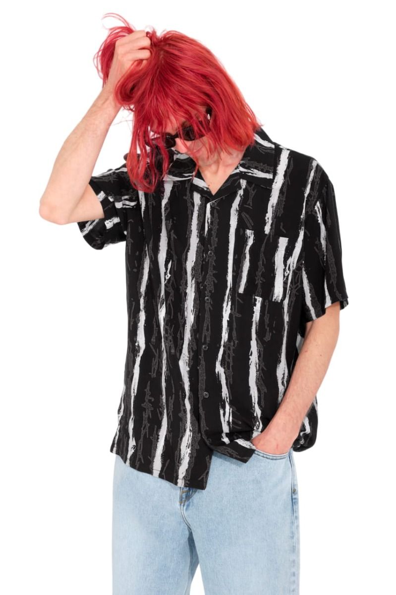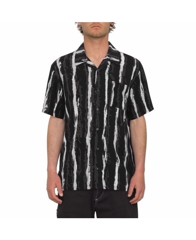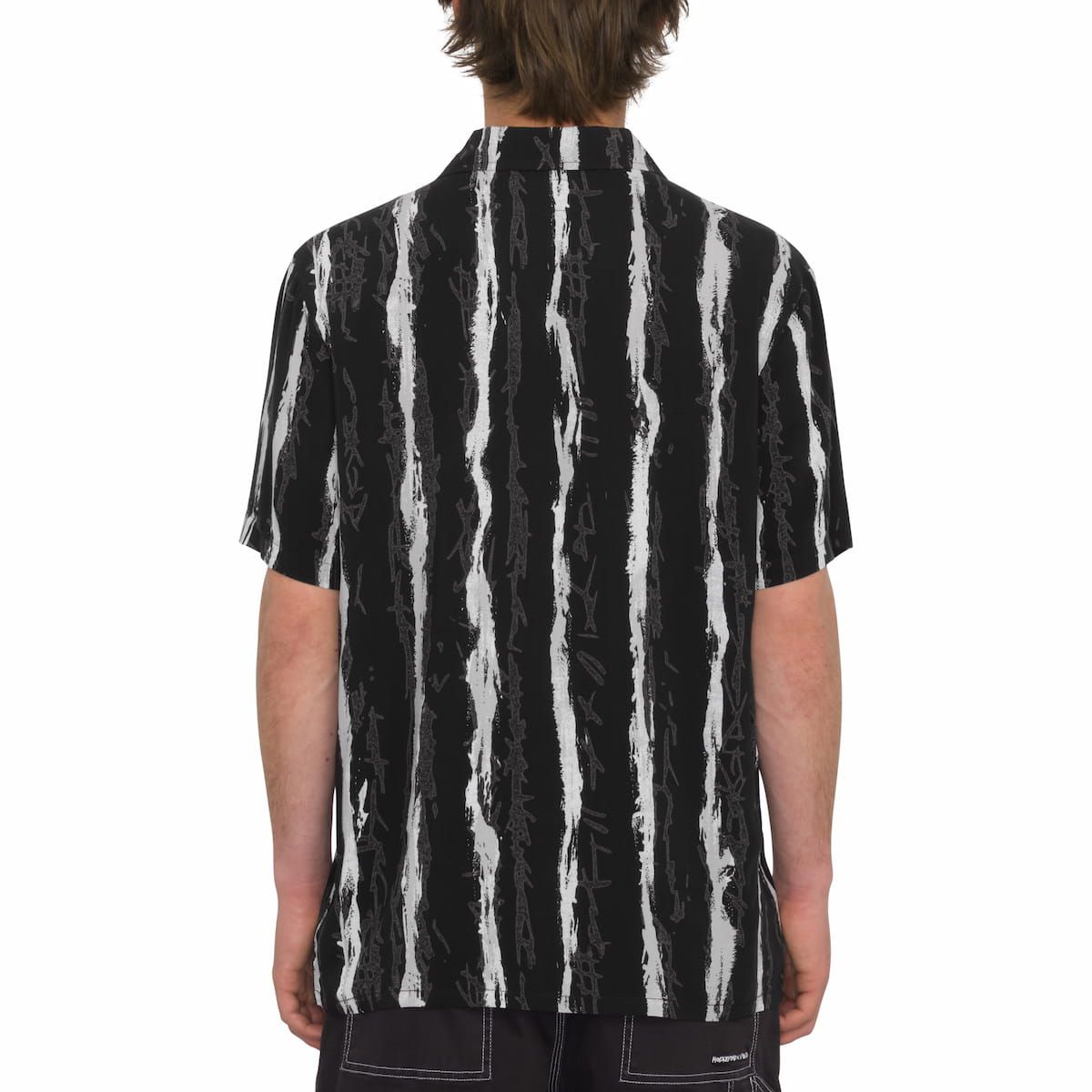 La camisa de manga corta para hombre V Ent Hockey Dad Woven SS en negro con estampado a rayas (Stealth) de Volcom está confeccionada con 100% viscosa.