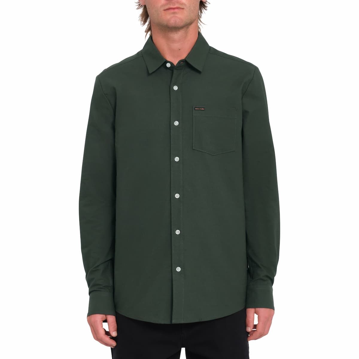 La camisa de manga larga Veeco Oxford en verde oscuro (Dark Forest) para hombre de Volcom es una opción ideal para quienes buscan una prenda de alta calidad, cómoda y con un diseño atemporal.