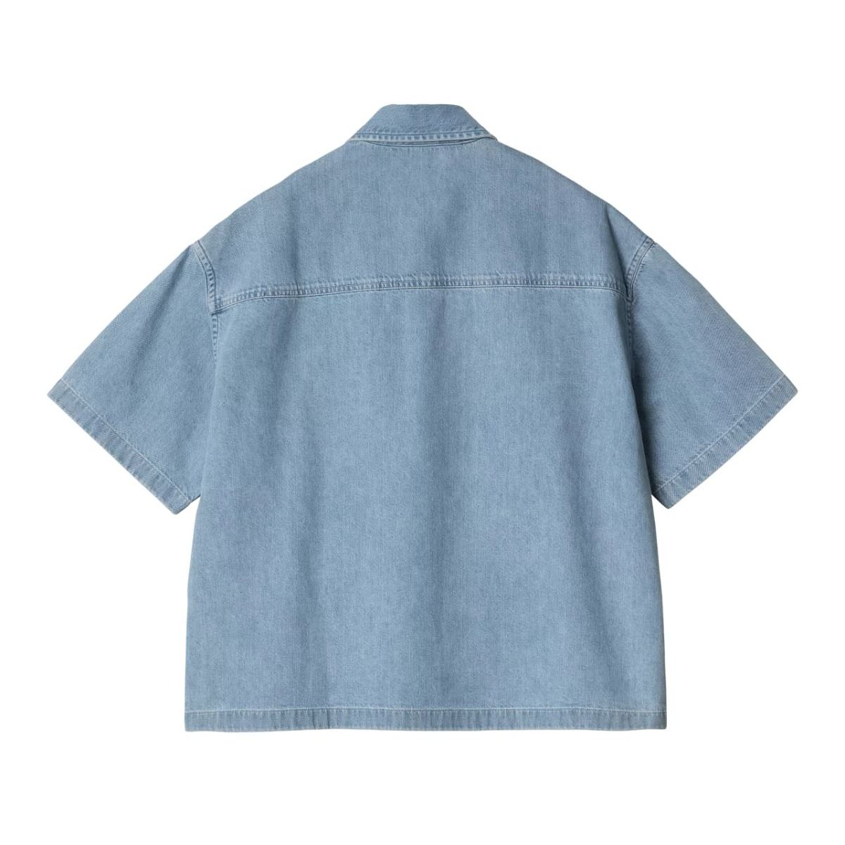 La camisa de manga corta para mujer S/S Lovilia Shirt en tono azul blanqueado (Blue-Bleached) de Carhartt WIP está confeccionada con tejido Denim de 100% algodón de peso medio (8,5oz).