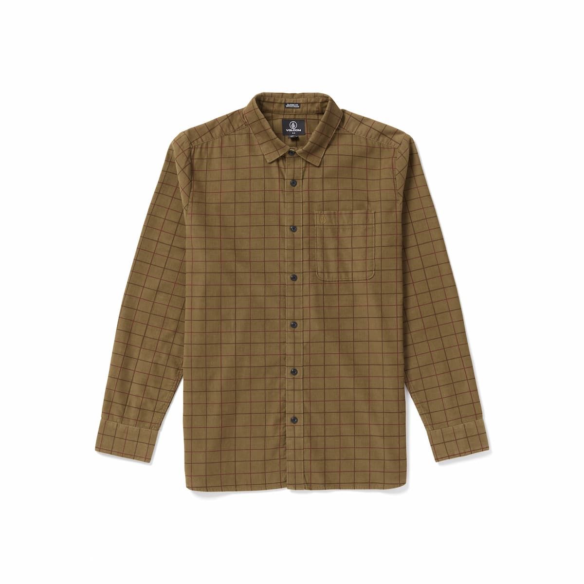 La camisa de manga larga para hombre Zander LS Shirt en tono caqui oscuro a cuadros (Dark Khaki) de Volcom está confeccionada con pana fina de 100% algodón.
