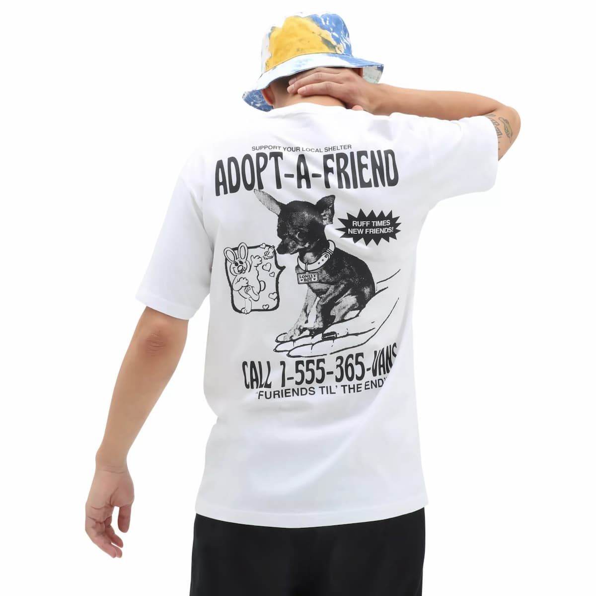 La camiseta de manga corta para hombre y mujer Adopted a Friend en blanco (White) de Vans está confeccionada con tejido de 100% algodón cardado e hilado en anillos (185g/m2).