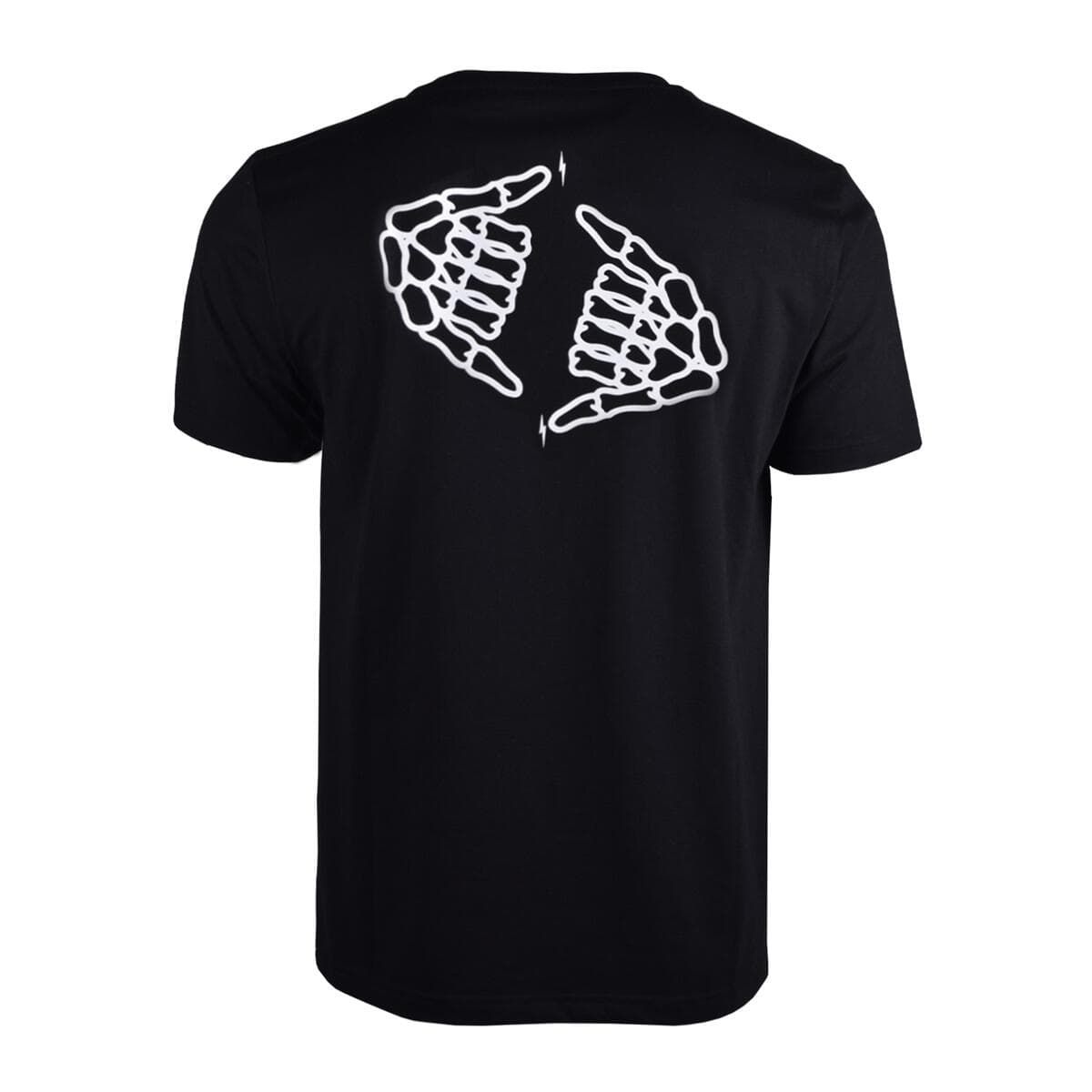 Esta cómoda camiseta de ajuste regular cuenta con cuello redondo acanalado, manga corta, estampado Lightning Bolt en el lado izquierdo del pecho y unas manos de esqueleto junto con el rayo de la marca impresos en la espalda.