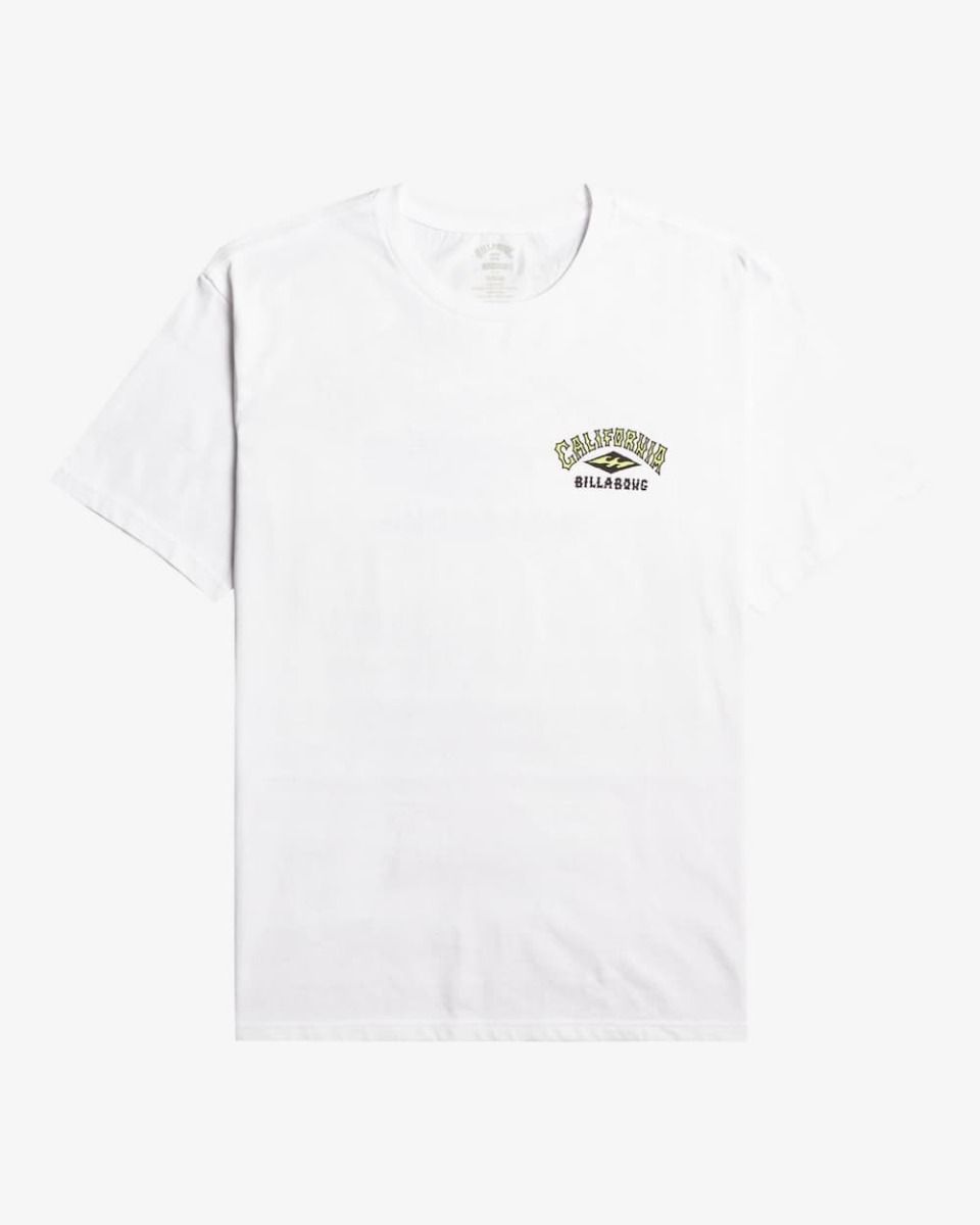 La camiseta de manga corta Arch Dreamy Place blanca para hombre tiene el sello de garantía Billabong en el cuello interior.