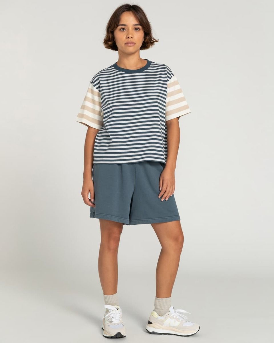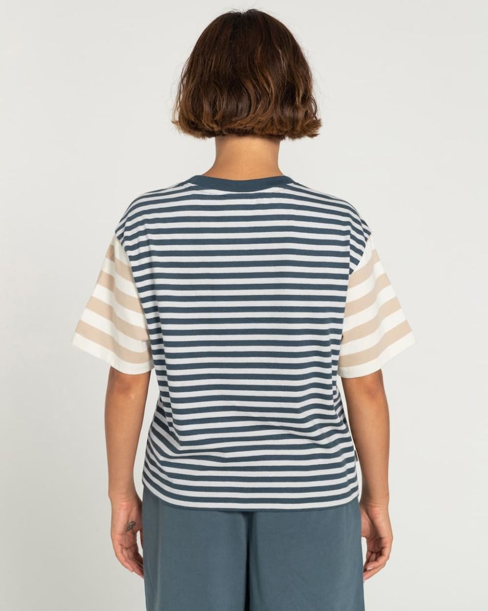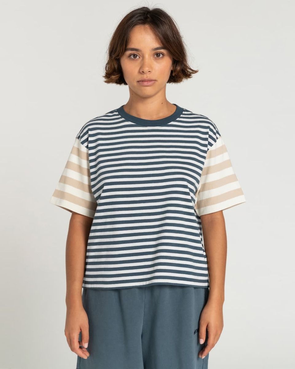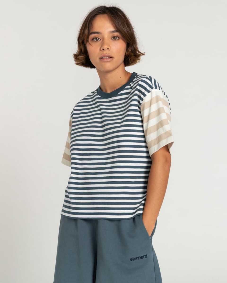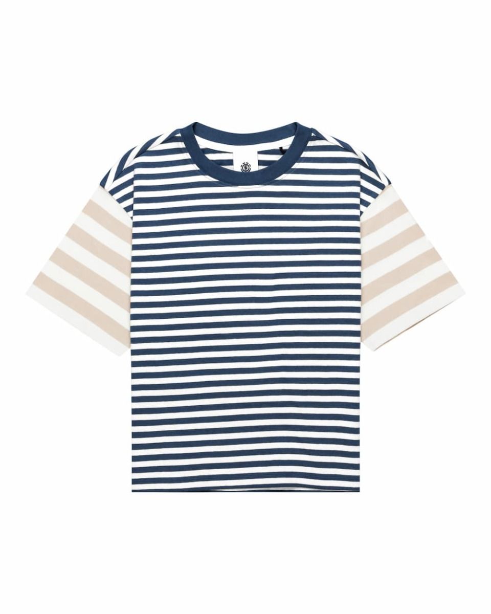 La camiseta para mujer Artondale SS en azul marino con estampado a rayas (Midnight Navy) de Element está confeccionada con 100% punto de algodón orgánico (200g/m2).