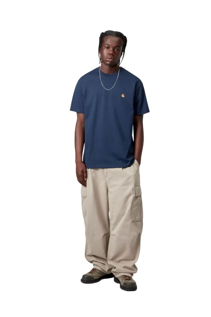 Camiseta de manga corta Carhartt WIP Chase en color azul júpiter y dorado para hombre