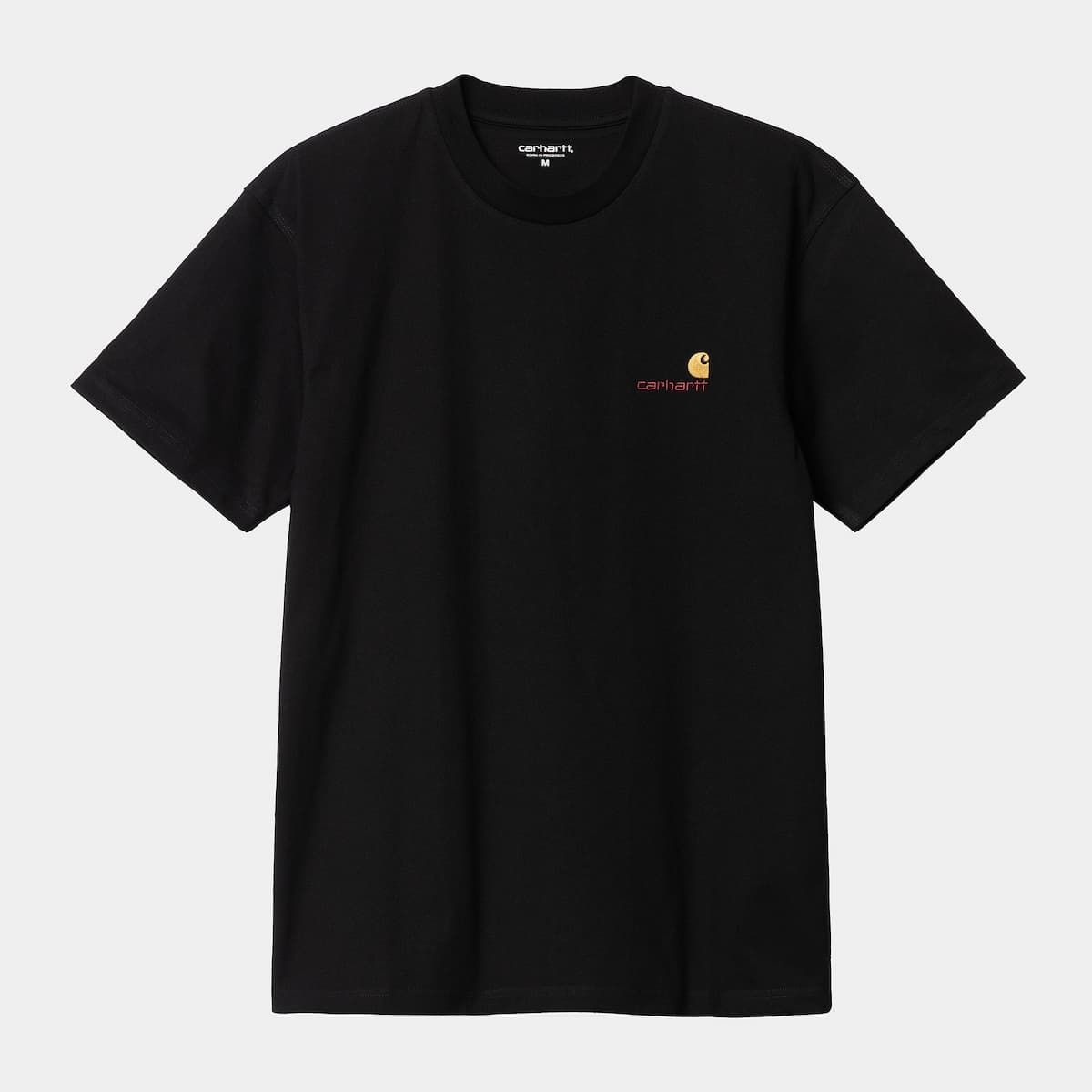La camiseta para hombre S/S American Script T-Shirt en negro (Black) de Carhartt WIP está confeccionada con punto jersey de 100% algodón orgánico (240g/m2).