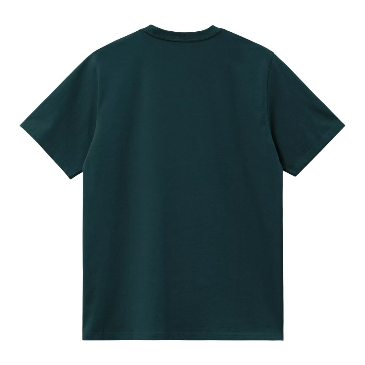 Camiseta Carhartt WIP orgánica en azul verdoso (Deep Lagoon) con bordado en el pecho. Tejido grueso, corte holgado y estética streetwear para el día a día.