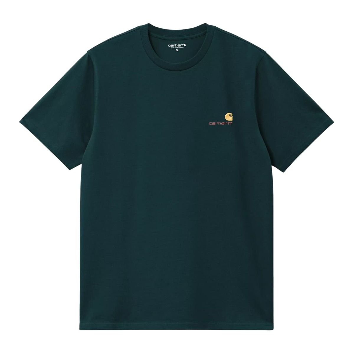 Camiseta orgánica de manga corta Carhartt WIP American Script en color azul verdoso para hombre