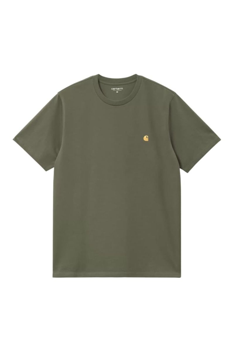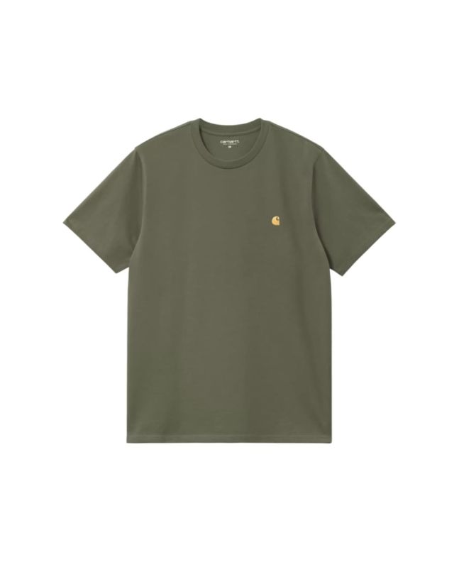 Camiseta de manga corta Carhartt WIP Chase en color verde Leaf con logo dorado para hombre