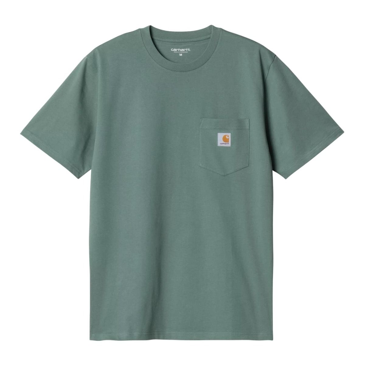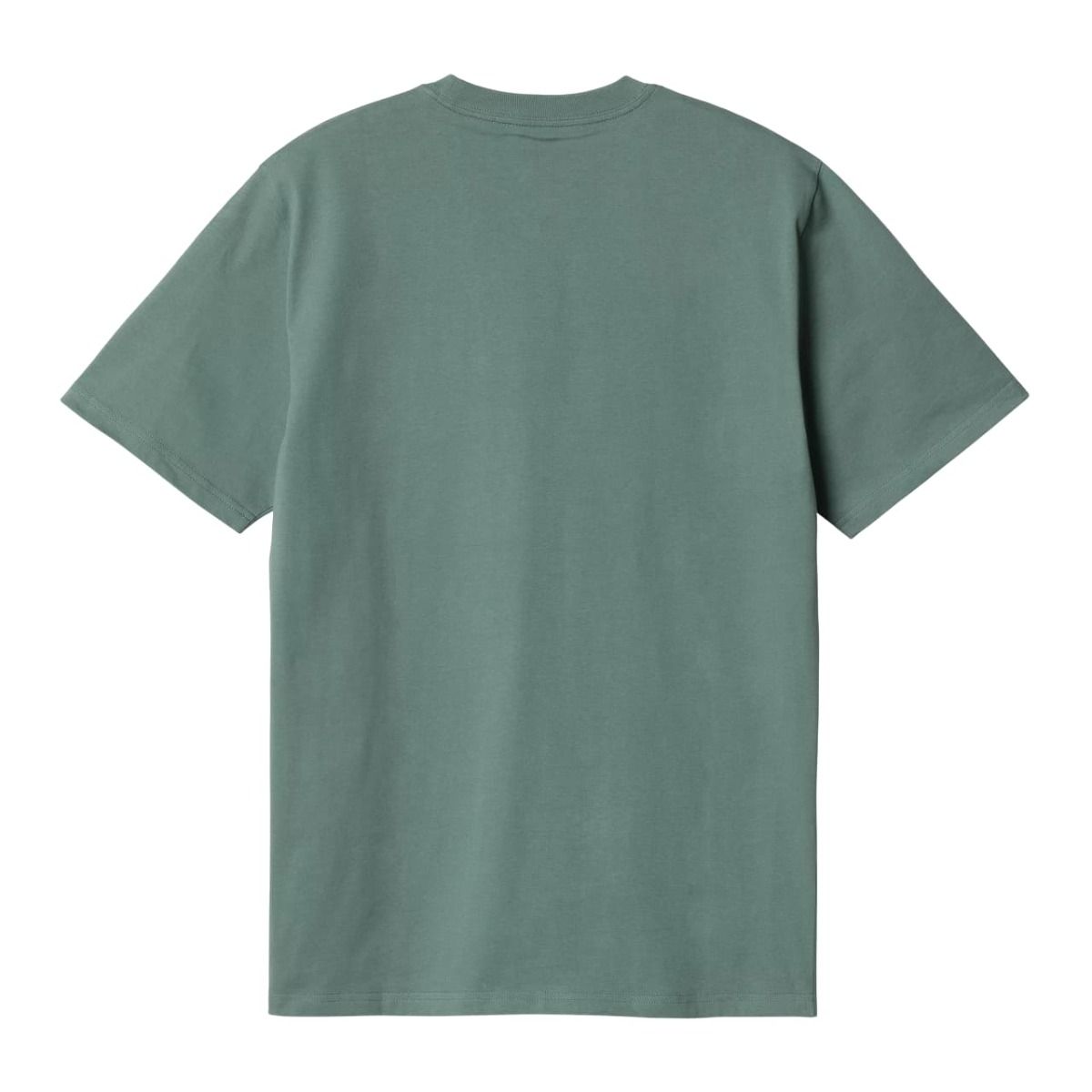 La camiseta de manga corta con bolsillo Pocket T-Shirt color Silver Pine para hombre tiene el sello de garantía Carhartt Work In Progress estampado en el cuello interior.