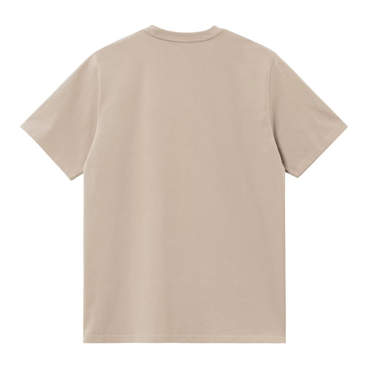 Camiseta Carhartt WIP con bolsillo y logo en pecho. Tejido de algodón 190g, color Wall. Corte regular, ideal para looks urbanos y skate.