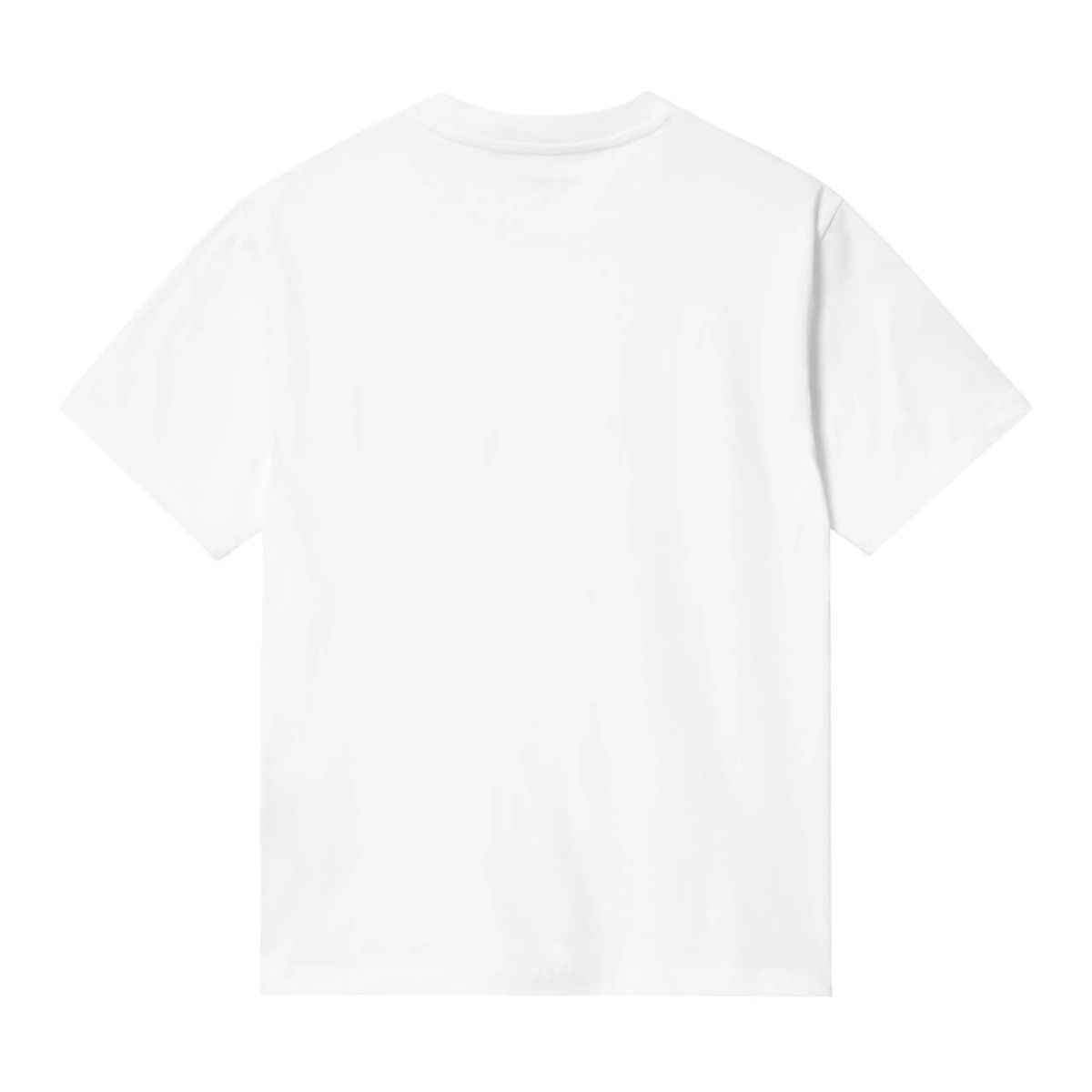 Esta camiseta orgánica blanca para mujer de ajuste holgado cuenta con cuello redondo, manga corta, junto con el logo de la "C" de Carhartt bordado en dorado en el lado izquierdo del pecho.