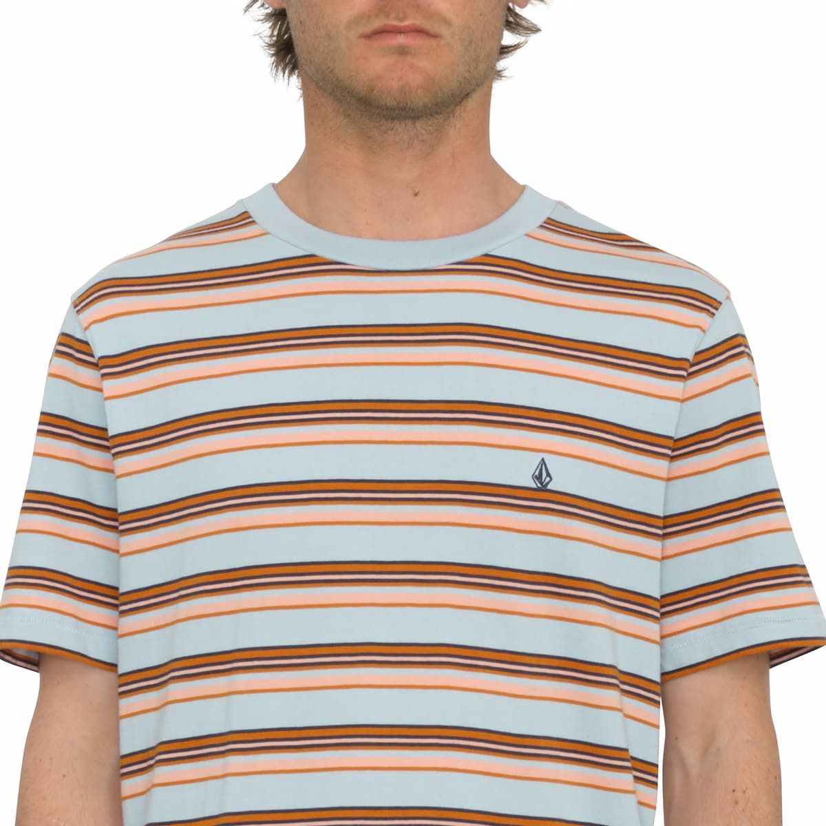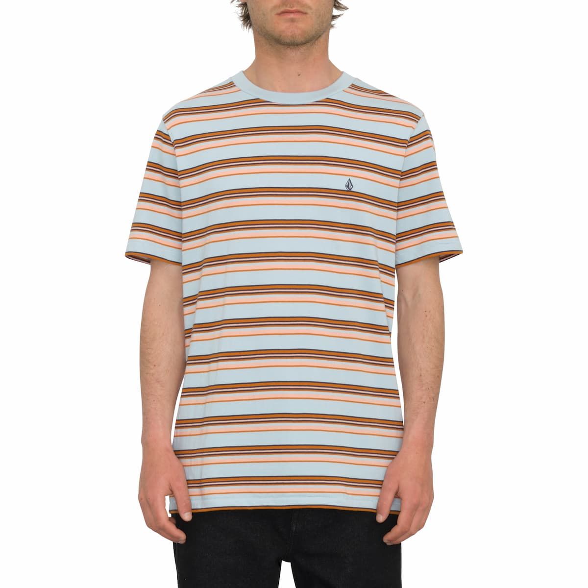 Camiseta de manga corta a rayas Volcom Commixt Crew en color azul celeste para hombre